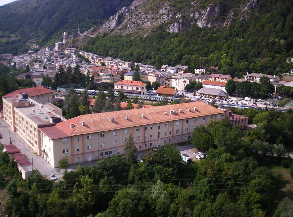 Salut , Je veux aller à l'hopital ! Cet établissement sur la photo est une annexe du CHU de Nice consacrée aux soins des plus anciens ,et comporte une maison de repos dans une des ailes de la construction . L 'esthétique du bâtiment a certes du mal à se fondre dans cette belle contrée motagneuse , mais offre un sujet photo interressant , complété par une rame tractée Italienne au départ de la gare de Tende .