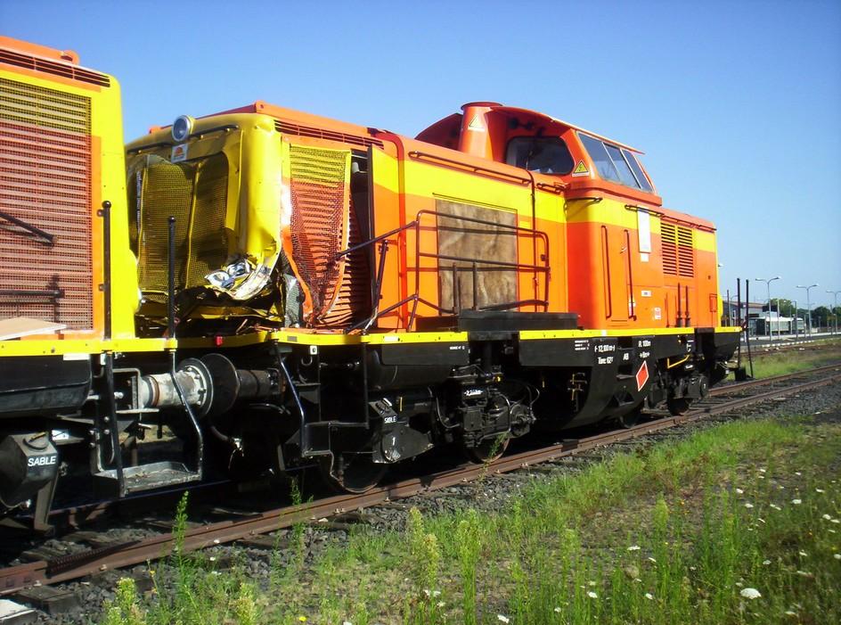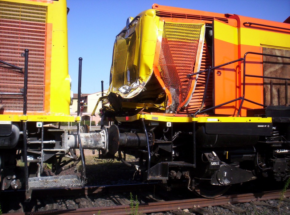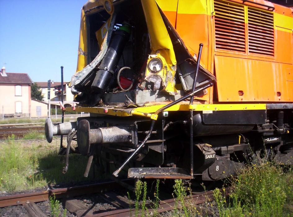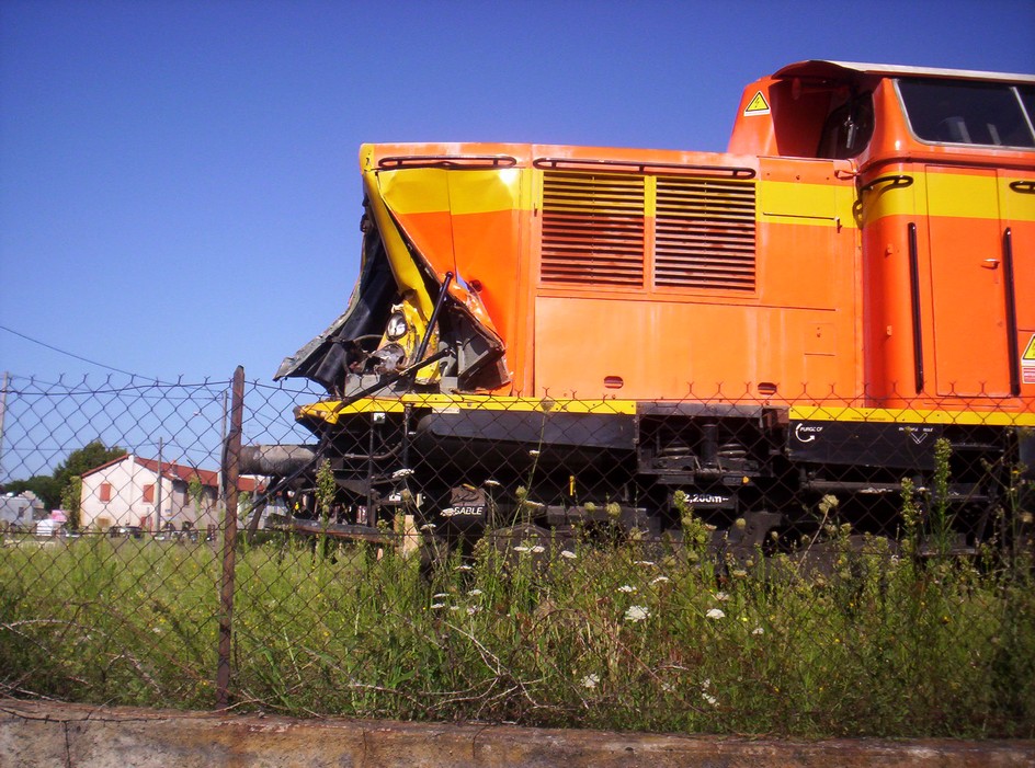 Bonjour , Boum , ail ! On ignore quelle vie ont pu mener ces pauvres V 211 ou plutôt comment on leur a fait voir . Ces machines pourtant récemment habilitées d'après leur plaque d'identification , risquent de connaître un avenir incertain en considérant les dégats observés , et noter à ce sujet la déformation au niveau des tampons . Ces engins sont réformés avec une étiquette rouge " à réparer sur place" , mais on voit mal ce qui pourrait être opéré sur place .