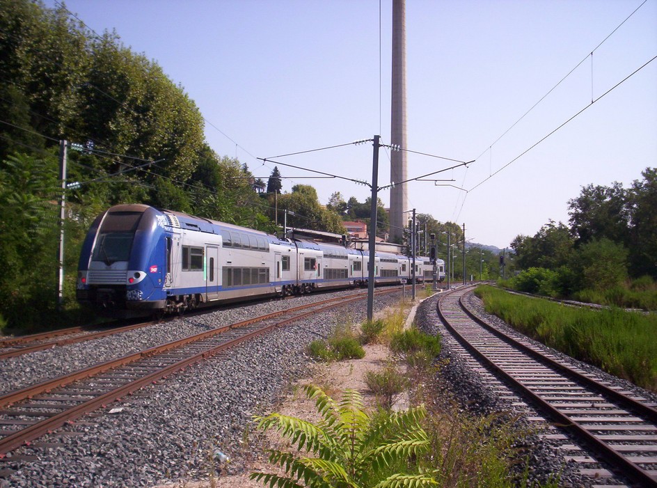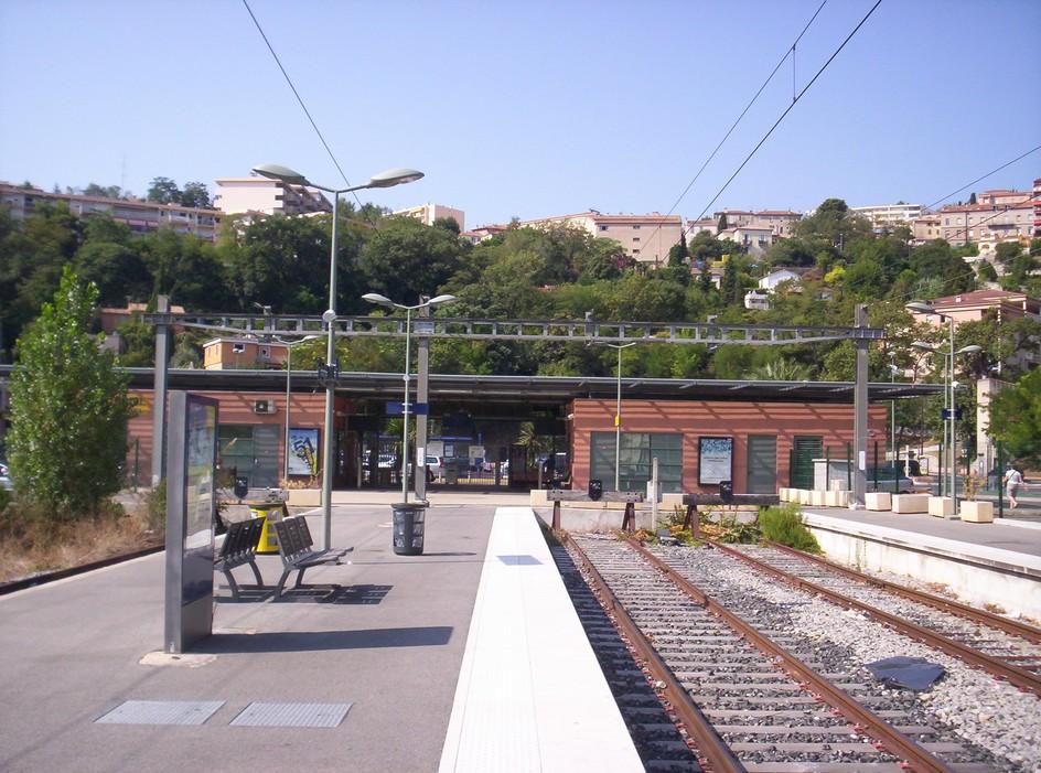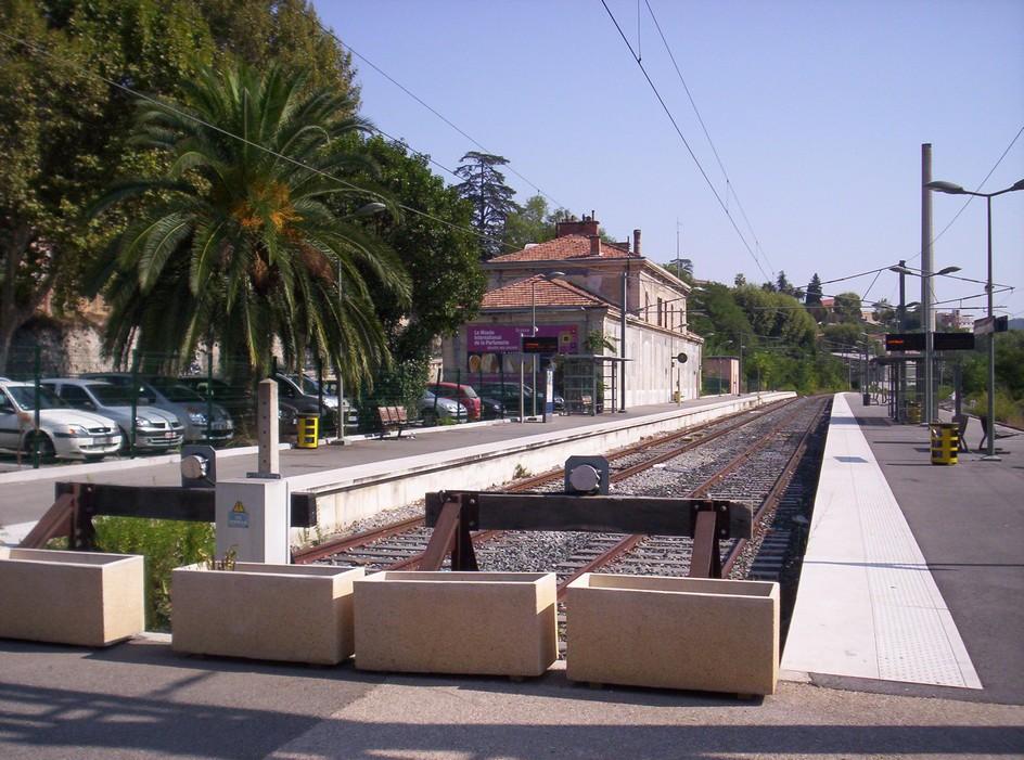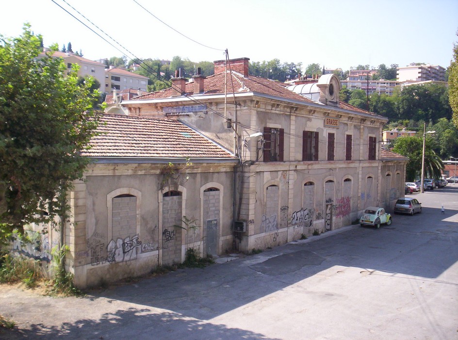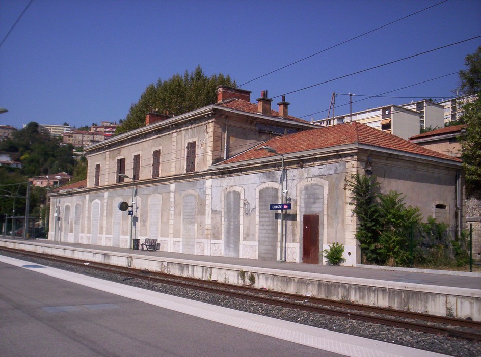 Hello , Adhérer au clubs : Il existe peu de possibilités de photographier des trains en ligne sur la section Cannes Grasse , on est souvent gêné par les constructions ou la végétation , seuls quelques beaux découverts existent dans les emprises du Royal Golf de Mougins donc à moins de devenir membre du club très "select " , il sera possible de manier l'appareil photo et les clubs de golf . Mais né (hélas?) de condition plus modeste , je vais me contenter de prendre des photos à la gare terminus de Grasse . La ligne Cannes Grasse a été fermée en 1938 au trafic voyageur et se trouve être une des premières voies frappées par ce sort , de 1978 à 1995 elle renait partiellement par la remise en service de la portion Cannes Ranguin , puis en mars 2005 elle fonctionne de nouveau de bout en bout avec une modernisation complète et électrification . L'ancien BV pourtant d'une architecture pourtant très belle et ancienne , parait bien dégradé par rapport au nouvel édifice inauguré en décembre 2004 .