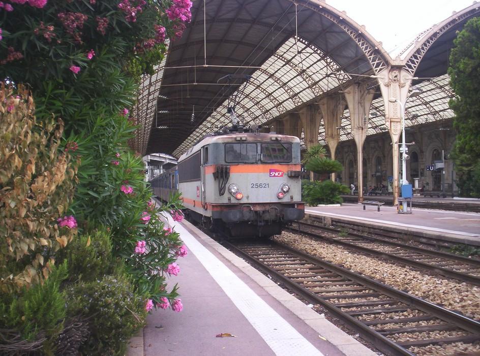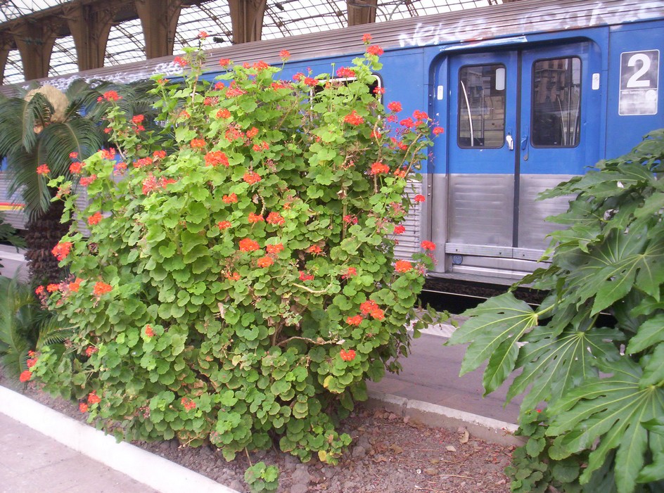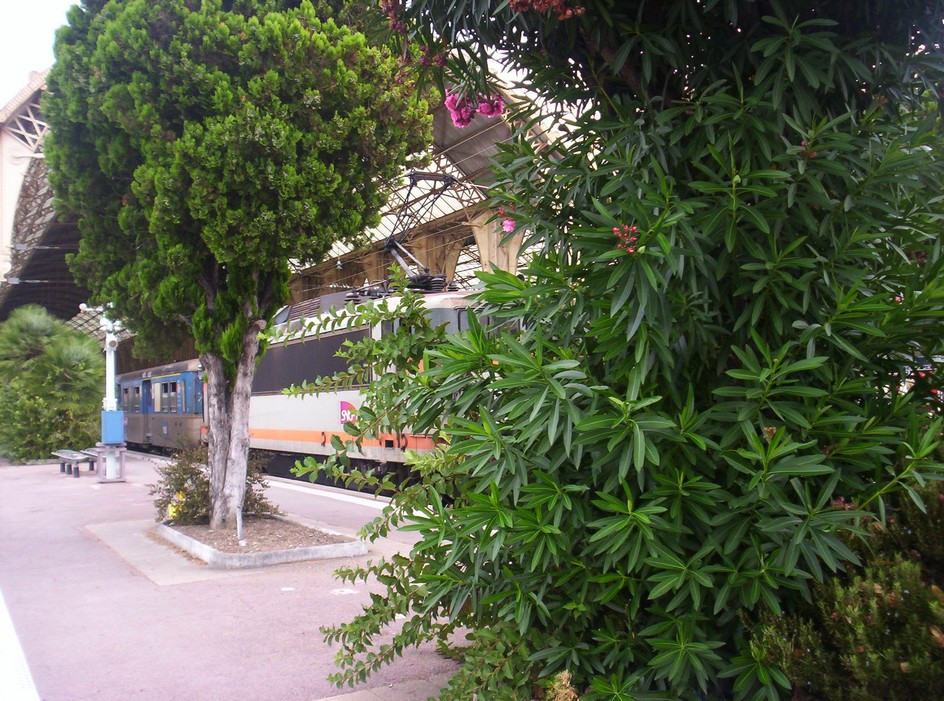 Salut , Oh , les belles plantes : La gare de Nice possède de magnifiques plantes , dont un très surprenant géranium pratiquement géant , et je suis pratiquement sûr ( d'après certaines rumeurs non fondées ) , que pour le maintenir en forme on lui donne de temps en temps un ( jeune et tendrrrre ) voyageur lotrela