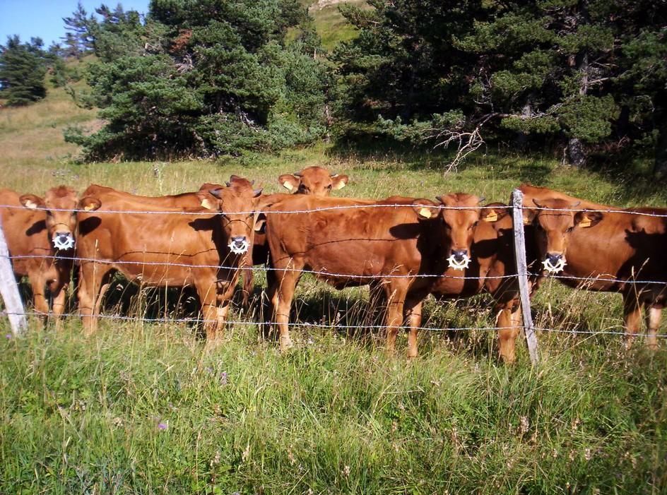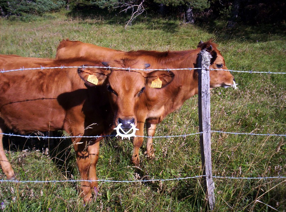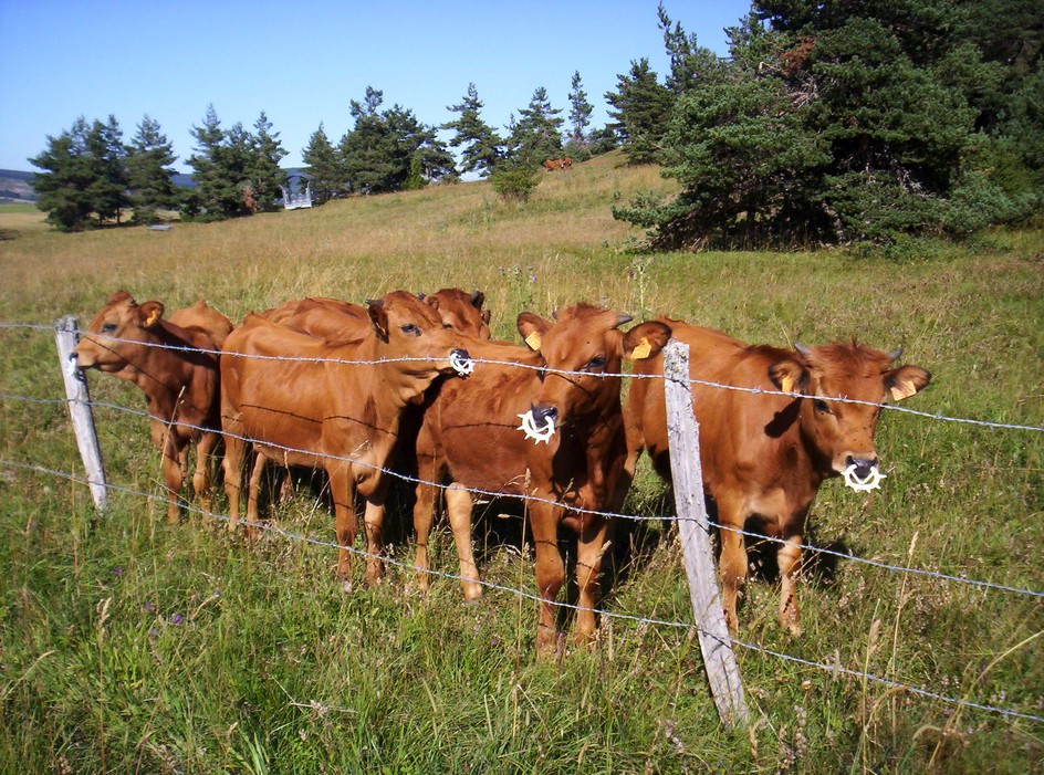 Bonjour , Fini , le bon lolo de maman ! On reste dans le domaine des vaches , mais avec cette fois ci leurs enfants . Ces veaux sont "équipés" d'un dispositif leur empêchant de téter .