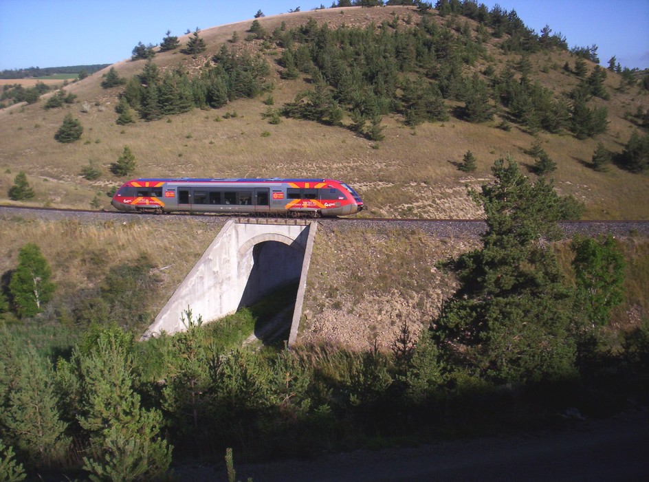 Salut , En allant au sommet : Le TER 878 981 du matin Mende - La Bastide , tout de suite après le départ de la gare de Allenc , affronte la rampe de 27 pour mille afin de parvenir au point culminant de la ligne . L A TER , rend un certaine sonorité dans cette rampe , mais il devait en être d'une toute autre partition sonore , du temps des autorails équipés d'un MGO ! .