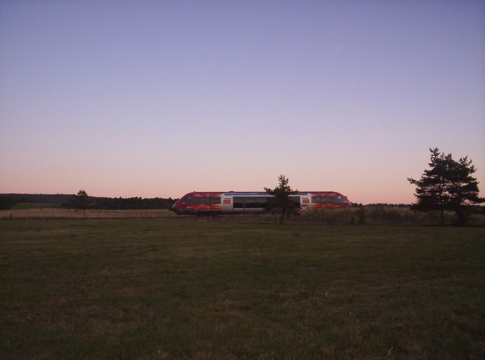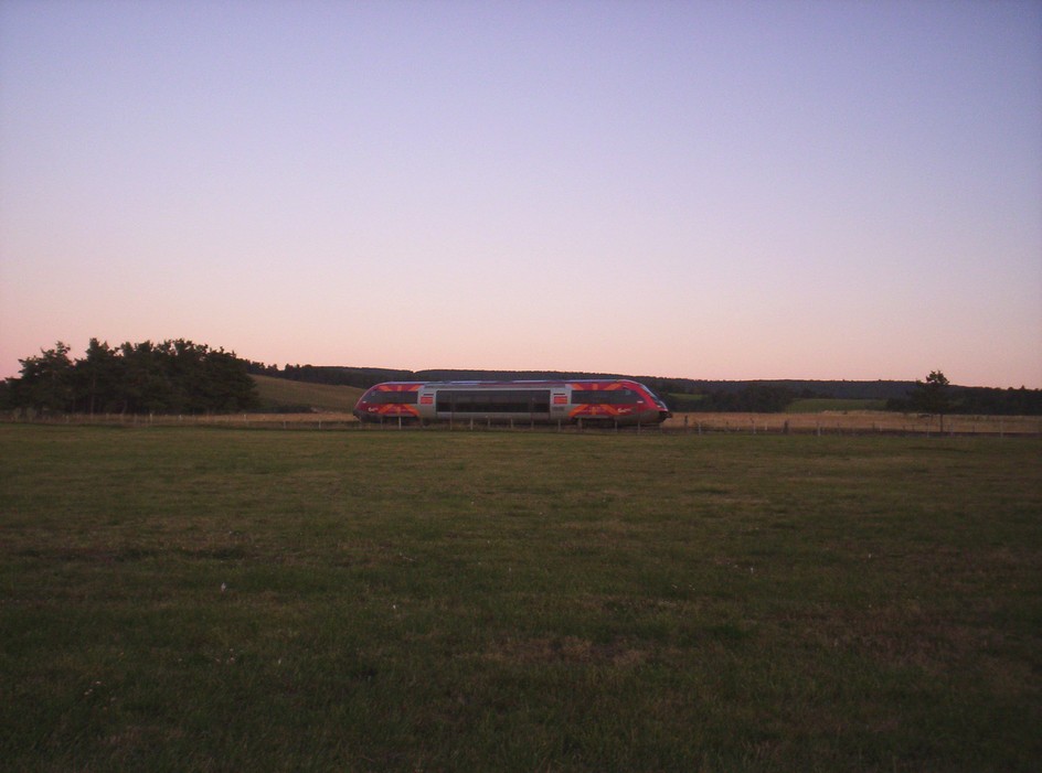 Bonsoir , Ligne superbe en effet , mais je dois déjà songer à partir , je profite d'une dernière pose photo avec le TER 878922 du soir La Bastide Mende , le soleil étant déjà couché il reste peu de lumière , mais un peu plus que la dernière fois avec ce TER , et après au dodo ... ... avant d'aller randonner le lendemain au Mont Lozère .