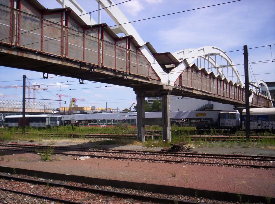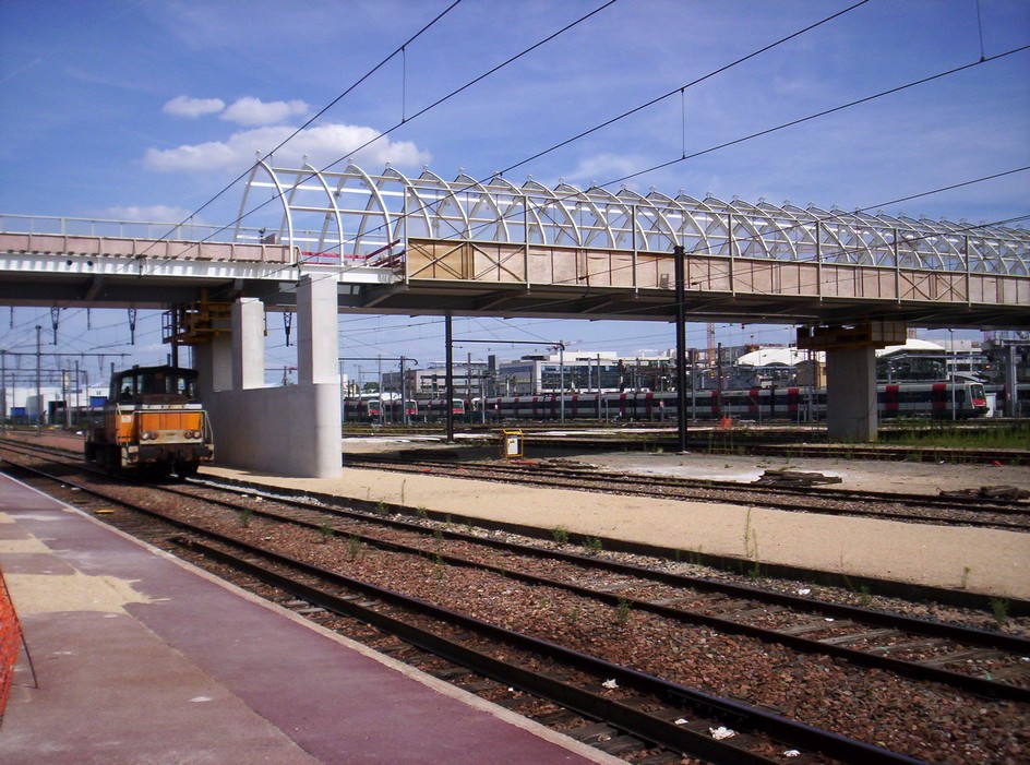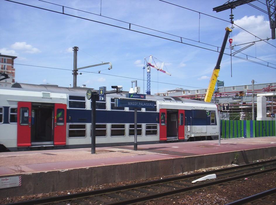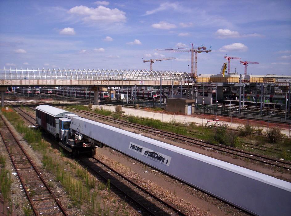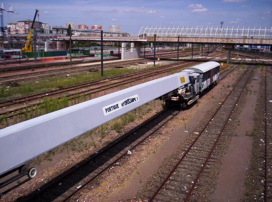 Bonjour , Me scies pas les os , mais le tablier du pont : On note en ce moment sur les voies de garage de Massy Palaiseau , la présence d'une grue portique de taille imposante . Cet engin va servir à la réfection d'un tablier de pont sur la ligne B du RER parisien , et cet itinéraire sera fermé toute cette fin de semaine entre Palaiseau et Massy Vérrières .