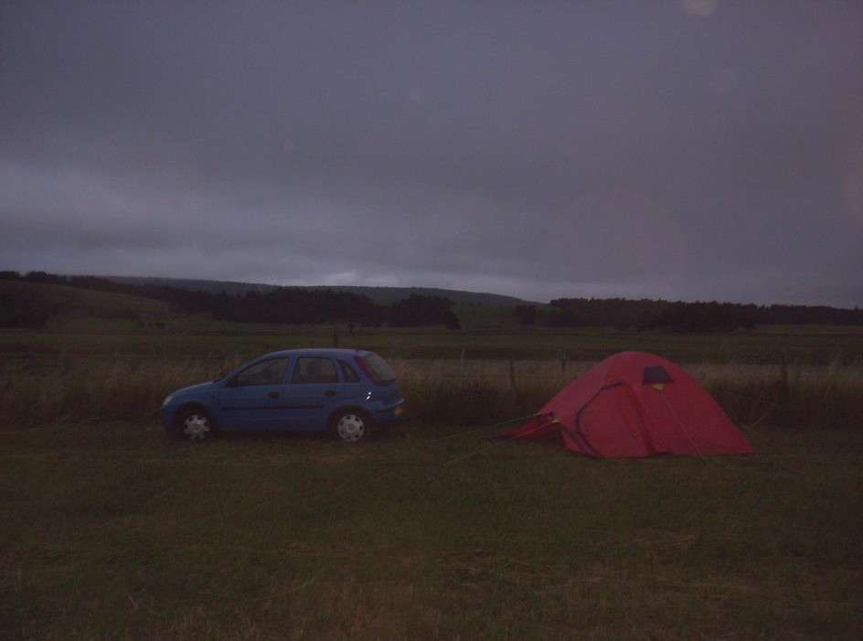 Bonjour , La pluie du matin , ne stoppe pas le pèlerin : Après une journée de repérage , le lendemain ( jeudi 13 août ) le temps était frais (11°C) et légèrement pluvieux et couvert de nuages . Heureusement , la suite se passe sous une tempête de ciel bleu .