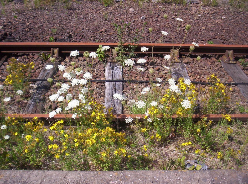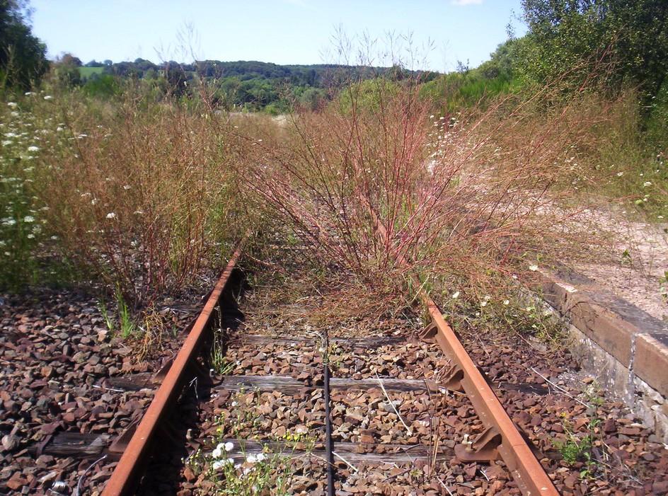 Salut , La ligne des Fades se met au vert : Même si c'est à la "mode" en ce moment , en considérant le résultat des dernières élections , mais le vert ne va pas forcément bien pour la santé d'une petite ligne ferroviaire . Après environ deux ans d'abandon , la végétation reprend ses droits .
