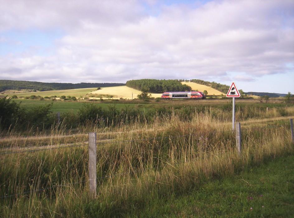 Bonsoir Vincent , Le câble posé au milieu de la voie sert peut être au passage des lignes de télécommunication *, car la ligne ne dispose pas de fils aériens . L'année ou les six derniers mois avant la fermeture de la ligne , l'autorail jouait en quelque sorte à la tondeuse , j'ai eu un très bon souvenir à bord du 2816 dans le compartiment 1 ère CL tout proche du MGO , mais attention aux branches qui frottaient au long du parcours , c'était le 06/07/2007 ! . * à confirmer .