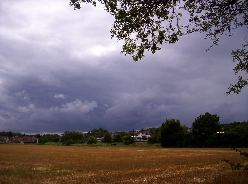 Hello , Ciel d'orage juste avant la moisson : Un beau ciel d'orage ce soir se forme et sous l'éclairage rasant du soleil , il en révèle toute sa beauté , mais comme l'a annoncé le site de Météo France , la beauté pourrait se transformer en danger . Pourvu que les cieux soient cléments , afin de préserver les récoltes ...