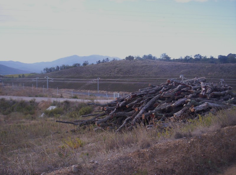 Salut , Quelques chênes liège ont été victimes du passage de la ligne pour traverser cette colline . Remarquer la couche de liège qui sert d'écorce à cet arbre afin de le protéger de la chaleur et des incendies .