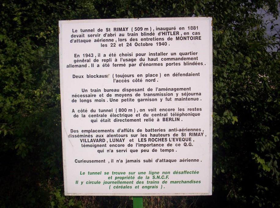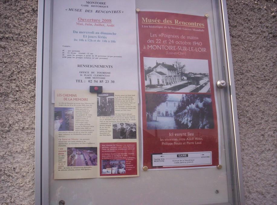 Salut , Serre moi la louche mon poto : La petite gare de Montoire sur le Loir ( section Vendôme , Château du Loir ) , est marquée à jamais par l'entrevue du président de l'Allemagne qui faisait fureur à l'époque et du chef de l'état Français par intérim . Cet événement historique faisait suite à la défaite Française de juin 1940 puis de la demande d'armistice de la part du perdant , et allait ensuite sceller le destin de la France à l'Allemagne pour le pire . Bien des lois et des mesures d'exception ( et des pires ) , sont à l'origine de ces rencontres . La paix revenue et bien des années après , cette section de ligne ne voit plus passer le train blindé de Hitler , mais le 2419 de l'association qui utilise la ligne pour le bonheur de tous .