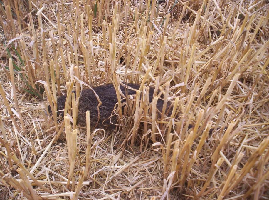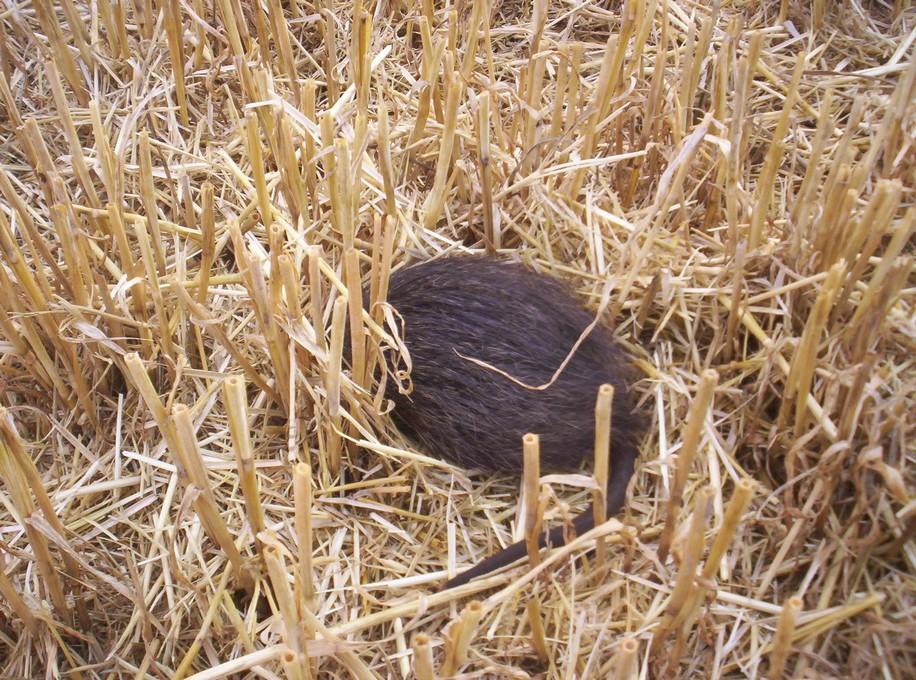 Bonsoir , En toute bonne photo en ligne , le repérage est primordial à moins de disposer avec soi , de tronçonneuse , de nacelle élévatrice ou mieux d'un hélicoptère afin de mieux cadrer son sujet Mais bon si tout le monde agissait ainsi Donc le premier petit coin en vue ( pas WC ! ) était bien sympa mais il y avait plein de poteaux qui faisaient ch... suer leur monde , j'en profite donc pour tirer le portrait de la voie DC de cet endroit posée sur traverses métallique . Le second coin m'a apporté des photos animalières , une bande de rats musqués glanaient des épis de blé tombés de la coupe du champs . A ma venue toute la tribu s'est dispersée sauf un individu ( qui avait trop mangé? ) et faisait le mort pour tromper l'ennemi .