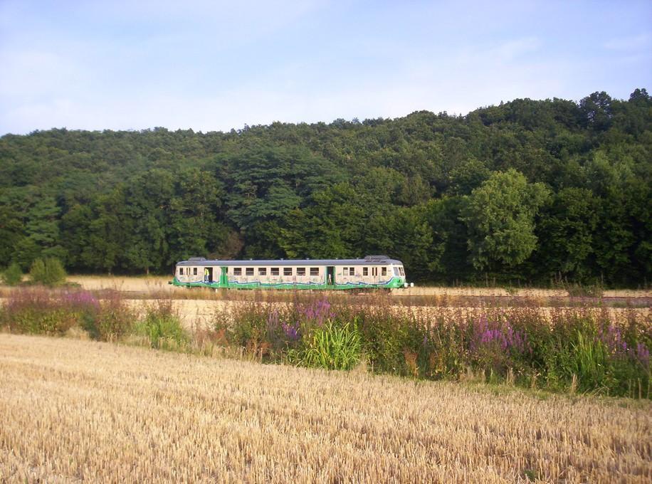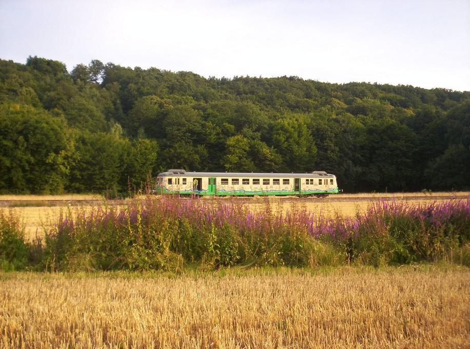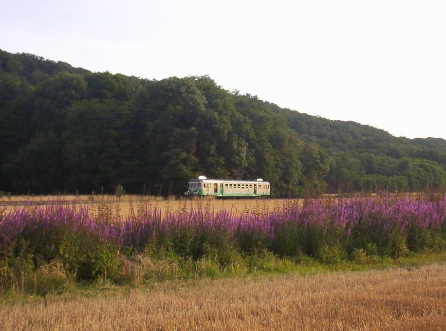 Bonjour , Une haie de fleurs , des arbres en fond de décor , pas de poteaux , tout est bien pour cette série de photos . L'X 2419 approche de son terminus de Thoré La Rochette .