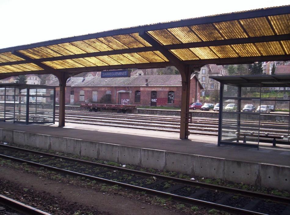 Bonjour , Pour terminer la série de photos , train-tram en gare de Sarreguemines , ce tram assure la desserte de Saarbrücken .