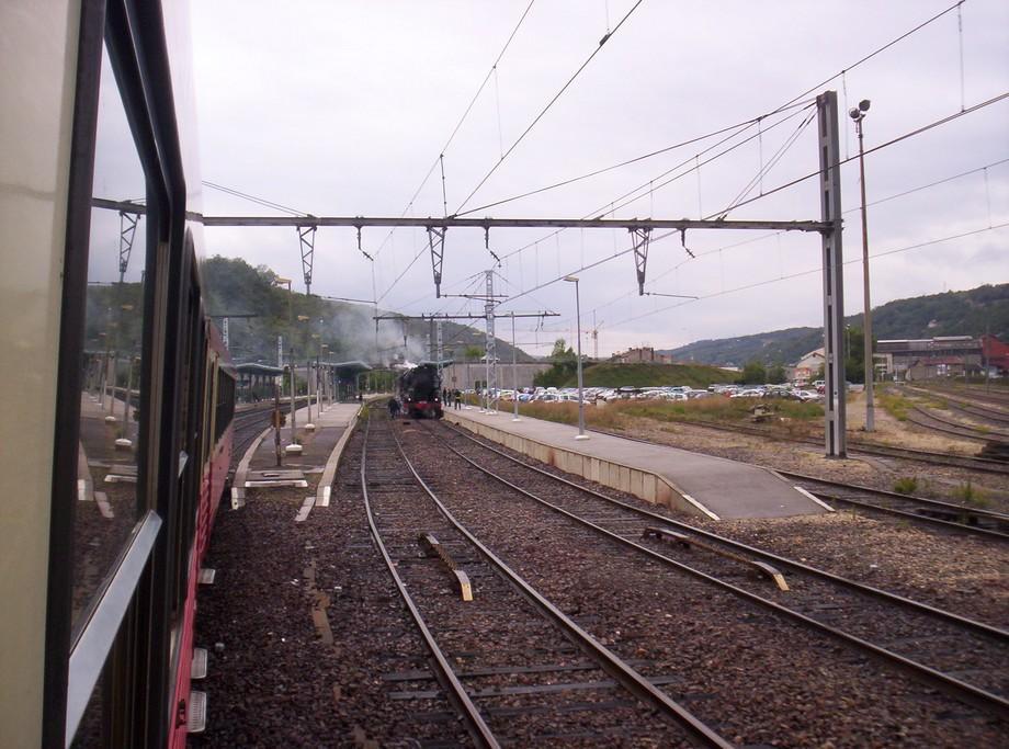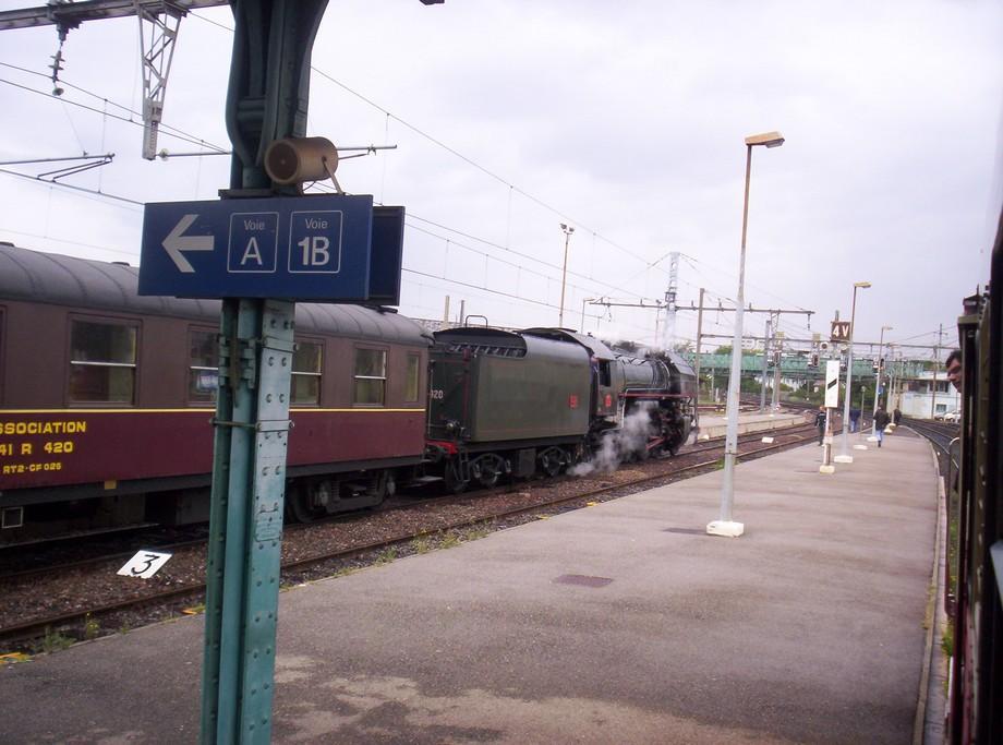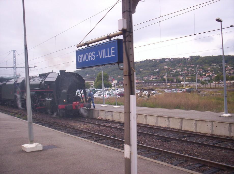 Bonjour , Rencontre vapeur , avec la rame de l'association de la 141R420 en acheminement à vide , ici stationnée en gare de Givors .