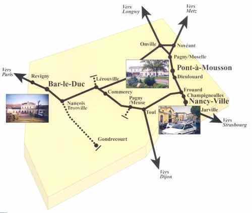 5. et hop L'Etablissement Exploitation Nancy Ouest-Lorraine couvre une zone géographique étendue, située sur deux axes ferroviaires importants, à forte densité de circulation : l'axe Paris – Strasbourg de Revigny à Jarville [Ligne 1] l'axe Nancy – Metz (jusqu'à Novéant y compris) [Ligne 12] Il comprend 260 kilomètres de lignes électrifiées et 50 km de lignes non électrifiées répartis sur le Sud-Meusien, la partie Sud du département de Meurthe et Moselle et l'extrême sud du département de la Moselle. L'Etablissement est un des quatre Etablissements Exploitation (EEX) de la Région de Metz-Nancy. Il est chargé de la production de l'offre définie par l'Entreprise et proposée à la clientèle. Cette production concerne, à des niveaux différents, les activités Voyageurs (GL, TER, gares), Fret et Infrastructure et nous place dans une relation directe avec le client dans un cadre concurrentiel dont les caractéristiques sont les suivantes : - Dans le domaine des déplacements voyageurs : A grande distance : Le réseau routier lorrain est dense, performant et placé sur de grands axes Nord/Sud et Est/Ouest. Sur les parcours à plus de 100 km, 62 % des Français n'utilisent que leur véhicule personnel. L'aéroport de Nancy-Metz offre des relations nationales et internationales. Au quotidien : Les infrastructures routières se développent régulièrement (exemple : mise en 4 voies de la N 57) et encouragent le covoiturage. Sur la Meurthe et Moselle, des lignes autocars assurent des liaisons régulières et à bas prix : (exemple : Toul-Nancy). - Dans le domaine du transport Fret : Le réseau routier et autoroutier, parfaitement inclus dans les infrastructures nationales et régionales permet aux entreprises de transport routier d'exercer une concurrence forte sur tous les sites industriels. Le réseau de voies navigables de France est accessible aux chargeurs : - La Moselle canalisée avec ses ports : Frouard, Belleville, Pont-à-Mousson, … - Le canal de la Marne au Rhin avec ses ports : Contrisson (à côté de Revigny), Velesnes, Haudelaincourt (à côté de Gondrecourt) et Toul, … L'Etablissement comprend 673 emplois (CO au 01/01/03) répartis : au siège : 29 emplois sur 4 entités opérationnelles : . l'UO Commercialisation composée de 7 équipes : Elle gère l'ensemble des services commerciaux voyageurs de l’établissement : gare de Nancy, boutiques de l'agglomération nancéenne, équipes de vente du Sud-Meusien et du sillon Lorrain, équipes de vente à distance (modules Ligne Directe), et BCC. . l'UO de Bar-le-Duc composée de 7 équipes : Elle gère les circulations Ligne 1, la production Fret sur deux GPF, et la production voyageurs. . l'UO de Nancy-Mouvement composée de 7 équipes : Elle gère les circulations , l'escale et la production Fret de la zone de Nancy. . l'UO de Pont-à-Mousson composée de 7 équipes : Elle gère les circulations, la production Fret sur deux GPF, la production voyageurs sur la tranche Sud du sillon lorrain. Chaque équipe est encadrée par un dirigeant de proximité. Des évolutions internes prévues à moyen terme impacteront fortement son fonctionnement dans les années à venir : l'évolution du TER après signature de la convention signée le 18 avril 2002 avec la région lorraine, la conduite du projet Escale en gare de Nancy et Bar-le-Duc, l'organisation des équipes et des UO par activité, la programmation de travaux infrastructure importants : - régénération du poste d'aiguillage de Nancy, - aménagements de plan de voie prévus par le contrat Etat/Région, - construction de la LGV Est Européen. Les gares et la production voyageurs L'EEX assure la production voyageurs sur les axes majeurs qui sont : Nancy, Toul et au delà vers le quart Sud-Est, Bar-le-Duc et Revigny et au delà soit vers Strasbourg, soit vers Paris Nancy – Lignes vosgiennes Nancy – Sillon mosellan Il gère : la gare de Nancy, l'une des 48 gares de l'Activité Gare située au milieu de ce réseau en étoile, la gare de Bar-le-Duc, gare GL, les gares TER de Dieulouard, Pont-à-Mousson, Pagny-sur-Moselle, Toul et Commercy, 17 points d’arrêt non géré (PANG) : Champigneulles, Frouard, Pompey, Marbache, Belleville, Vandières, Novéant, Onville, Liverdun, Fontenoy, Foug, Pagny-sur-Meuse, Nançois-Tronville, Revigny, Jarville, Houdemont et Ludres. 13 points de vente (dont 6 boutiques) participent activement au développement du chiffre d'affaires (+ 5,83 % d'augmentation du C.A. entre 2001 et 2002). Un centre de Ligne Directe installé à Nancy, assure l'information et la vente à distance de nos produits. Au total , l’établissement assure, en 2002, 35,3% du chiffre d’affaire régional. La production Fret Pour répondre aux demandes des clients Fret, l'EEX dispose des moyens de production suivants : Quatre GPF (Sud-Meusien, Champigneulles, Pont-à-Mousson et Toul) qui desservent des clients réguliers selon un schéma de dessertes journaliers adapté en fonction des besoins de la clientèle. Un chantier multimodal à Champigneulles. De nombreux embranchements tels que : Haironville à Revigny (groupe Arcelor) Champagne Céréales à Revigny, Ligny et Gondrecourt, Frouard, Belleville Tréfil-Union à Commercy Pont-à-Mousson St-Gobain à Foug, Dieulouard, Pont-à-Mousson Port de Frouard Elles ont assuré un trafic de 8,03 Mt en 2002 (arrivages + expéditions) . La production Infrastructure Les agents des équipes "Circulation" assurent, pour le compte du Réseau Ferré de France, la gestion opérationnelle des circulations ferroviaires sur les axes Revigny, Bar-le-Duc, Nancy, Jarville et Nancy-Metz, notamment au moyen de : 22 Postes Electromécaniques, 3 Postes Descubes 4 Postes PRG 5 Postes PRS 1 Poste PRCI Ils assurent notamment la gestion des bifurcations importantes de Lérouville, Toul, Frouard, Pagny-Moselle, Onville et Novéant. Des projets importants de l'Activité Infrastructure confirment la place de l'Etablissement dans le 