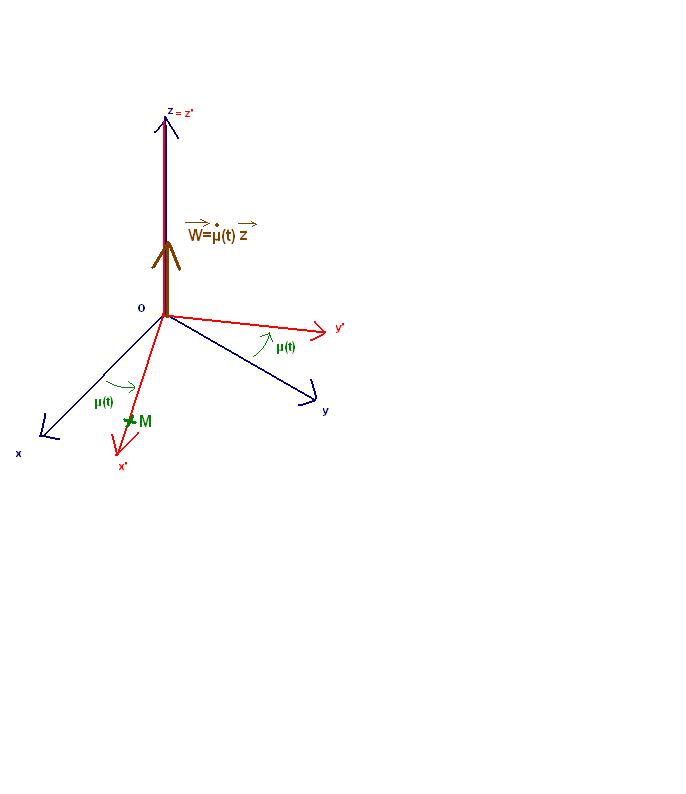 Bonjour, d'accord avec vous sur le principe; notamment pour tan(alpha)= alpha... Après le schéma statique ce n'est qu'une aide à la compréhension car la force centrifuge (ou force d'inertie d'entrainement) ne s'appréhende qu'en dynamique: si on se place en statique on est fixe ou à la rigueur en mouvement rectiligne uniforme. C'est surtout le référentiel qu'il faut bien choisir: surtout pas le terrestre mais bien le référentiel du train. Je ne pense pas avoir le temps de tout faie dans ce message mais je le continuerai après: Système: {motrice} Soit R un référentiel galiléen. Soit R' un référentiel non galiléen. Soit M un point de masse m. Principe fondamental de la dynamique dans R: ma=F (lettre en gras correspondent à des vecteurs) or a= a'+a(entrainement)+a(coriolis); donc ma=F=ma'+ma(entrainement)+ma(coriolis); d'où ma'=F+(-ma(entr.))+(-ma(cori.)) Nota: [F, -ma(entr.), -ma(corio.) ont la dimension de forces] Nota2: On comprend donc que si R' est en translation rectiligne uniforme par raport à R ma'=F donc R' est galiléen. Ici ça va, R' est en rotation par rapport à R. On supposera R' en rotation UNIFORME par rapport à R, c'est à dire que W(vecteur rotation(vertical) du train dans le référentiel terrestre))= constante Bilan des forces extérieures: Poids: mg Force centrifuge: mW^2HM (HM:vecteur position du point de gravité de la motrice par rapport à son projeté orthogonal sur l'axe de rotation) Réaction du support: R Force de coriolis: -2mW^V' (ici ^ veut dire produit vectoriel); elle n'existera que si la motrice est en mouvement dans le repère R' c'est à dire le repère lié à sa rotation (autrement dit cette force de coriolis n'existe pas ici car le seul mouvement est le jeu de l'essieu dans la voie qui est négligeable dans notre problème). On se placera donc à l'équilibre dans R' ! Je vous fais un petit schéma et je le mets après...