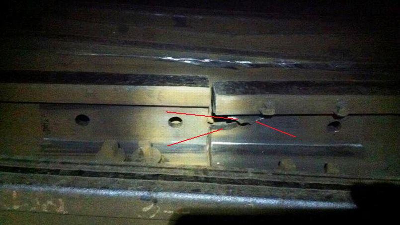 Je trouve que pour une "Cadre Equipement" vous manquez sérieusement de retenue... un peu de dignité serait pas mal. N'oubliez pas que ce forum est trés lu et par des gens qui ont hélas besoin de connaitre la vérité car peut être impiqués dans cette catastrophe. Alors vos certitudes et votre expérience dit que... Il semble malheureusement que les TJD de Brétigny n'étaient pas dans un état excellent et que leur géométrie était délicate à maintenir (cf. le récent remplacement de bois et de matériel sur celle V2 d'un âge équivalent à cette TJD), en tout cas les Mauzin précédents éclaireront l'enquête sur ce point ! les photos ne montrent rien d'impossible à admettre dans la mesure où ces appareils sont de grande tangente et où le joint de talon est trés proche de l'ornière. L'éclisse a juste eu à être poussée pour se retrouver là (pas de vol plané à la Michel Chevallet comme on l'a vu dans cette navrante vidéo) on remarque sur une des photos qu'il y a une rupture sur un des abouts, pas dit que cette fissure soit une conséquence du choc et peut être existait- elle avant, elle semble correspondre au trou de l'éclisse où un boulon semblait manquer. Peut être y avait-il aussi beaucoup de danse, sur une autre photo vue sur les réseau sociaux, la présence de poussière de ballast et d'une teinte de ballast différente autour d'un bois attesterait que oui un boulon qui casse en fatigue et les autres en cisaillement ça n'a rien d'une ineptie technique j'ai déjà eu le témoignage de "cadres équipements" comme vous, mais qui a l'inverse ont déjà vu des éclisses voler (circonstantes trop longues à expliquer ici) et percer un réservoir de frein l'ami Fabr a fait part plus haut de son expérience et du signalement qu'il avait fait en voie courante attendons la conclusion des gens qui ont tous les éléments en main,