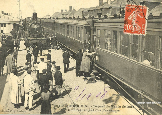 Bravo Ae 8/14 et telle était l'ambiance à Cherbourg le 10 avril 1912 à 15 h 30 lorsque le New-York Express parti de St Lazare à 9h40 a débarqué 151 voyageurs de 1ere classe et 28 de seconde classe, passagers du Titanic pour sa traversée inaugurale. Les 102 passagers de 3eme classe, partis de St Lazare à 7h45 par l'Express 315 étaient arrivés à 14h45. Le Titanic retardé par un incident à l'appareillage à midi à Southampton avait 1 heure de retard. Il est arrivé en rade vers 18h30 et reparti vers l'Irlande vers 20h30. Les trains ont ramené à Paris les passagers du Titanic débarquant à Cherbourg après une courte traversée de la Manche, certains ayant en gare du Nord une correspondance pour Londres. Cette activité a duré des décennies à Cherbourg, mais la date du 10 avril 1912 est restée particulière. 2 liens intéressants : - le dossier de Presse de la Cité de la Mer à Cherbourg http://www.manchetourisme.com/pdf_contribute/DP-TITANIC-2012.pdf - un intéressant dossier de l'Ajecta sur la voiture Ouest du type utilisé par le New York Express le 10 avril 1912. Dans les commentaires vous trouverez le nom du mécano de ce train exceptionnel. Pour lui ce devait être un honneur ... mais il fut bien affecté par le sort terrible qui a frappé beaucoup des voyageurs de ce train http://ajecta.unblog.fr/2008/09/29/au-revoir-voiture-titanic/
