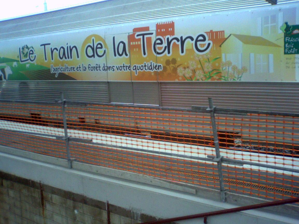 Train de la Terre J'ai vu ce matin en gare de Châlons en Champagne "Le Train de la Terre", je ne savais meme pas ce que c'était! Bon peut être quelqu'un en a déjà parlé sur le forum, mais ça ne me disait rien. Bon j'ai pris 2 photos à l'arrache avec mon téléphone car j'avais juste le temps pour ma correspondance et mon train pour Nancy entrait en gare: