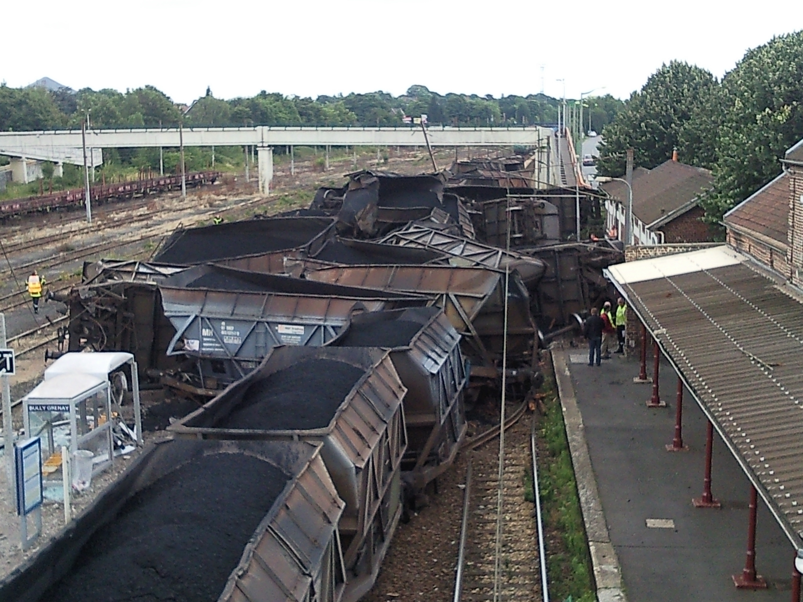 C'est du très très lourd... Haubourdin, à côté, c'est rien. Par contre les premières prévisions parlent de reprise d'exploitation possible vers le milieu de la semaine prochaine. Il s'agit d'un train de charbon (88214) parti de Dunkerque. Le premier wagon a perdu un essieu suite semble-t-il à un frein serré. Pas plus d'info pour l'instant.