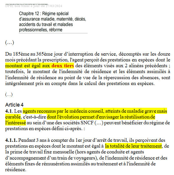 Dans le pire des cas (immédiat, à partir du 185ème jour d'arrêt sur 12 mois) ce n'est pas demie-solde mais 2/3. I.L.D. - indisponibilité de longue durée - c'est une notion RH. Pour faire simple, il s'agit de savoir si l'emploi est de fait devenu vacant ou pas en raison d'une absence (indisponibilité) de longue durée et qu'un remplacement au cadre d'organisation est nécessaire sans avoir à continuer à prélever sur la réserve qui n'est pas dimensionnée pour. A.L.D. - affection de longue durée - c'est une notion d'assurance maladie. La prise en charge des soins des malades en A.L.D. se fait sur de meilleures bases. Pour faire simple encore, on va dire à 100 % (du cout des traitements). Ce que les agents du cadre permanent ont déjà dans leur régime spécial (on parle ici des bases de remboursement de la sécurité sociale avec leurs tickets modérateurs). L'ALD a aussi une incidence sur les délais de carence en cas d'arrêts de travail successifs qui y sont liés. Pour ne pas passer en demie-solde (oups, 2/3 de solde !) ça repose sur l'avis du médecin-conseil de la CPRPF. On parle d'admission au régime longue maladie, une notion spécifique au régime spécial. Le vocabulaire RH a de l'importance y compris pour les médecins prescripteurs pas forcément rompus au régime d'assurance maladie du personnel du cadre personnel du cadre permanent. En cas d'inquiétude ou de doute, il n'est pas inutile de vérifier auprès du service RH et/ou de l'agence paie famille si la demande d'avis au médecin-conseil de la CPRPF a été faite en temps en heure à l'approche de l'échéance. J'ai déjà lu dans ce forum un témoignage qui relatait que le service RH disait que c'est à l'agence paie de faire ce qu'il y a à faire et l'agence paie de répliquer que non c'était au service RH. Vu de l'extérieur, je ne saurais dire... Si un acteur RH passe par ici, il ne manquera sans doute pas de préciser ce point.- Candidats conducteurs SNCF en attente de formation