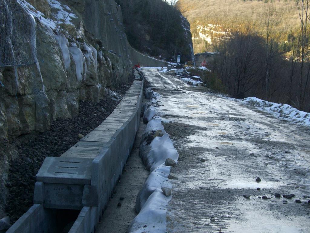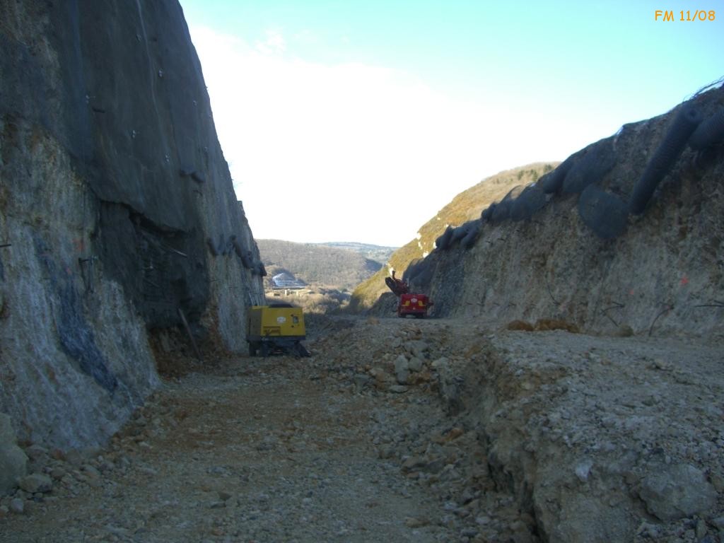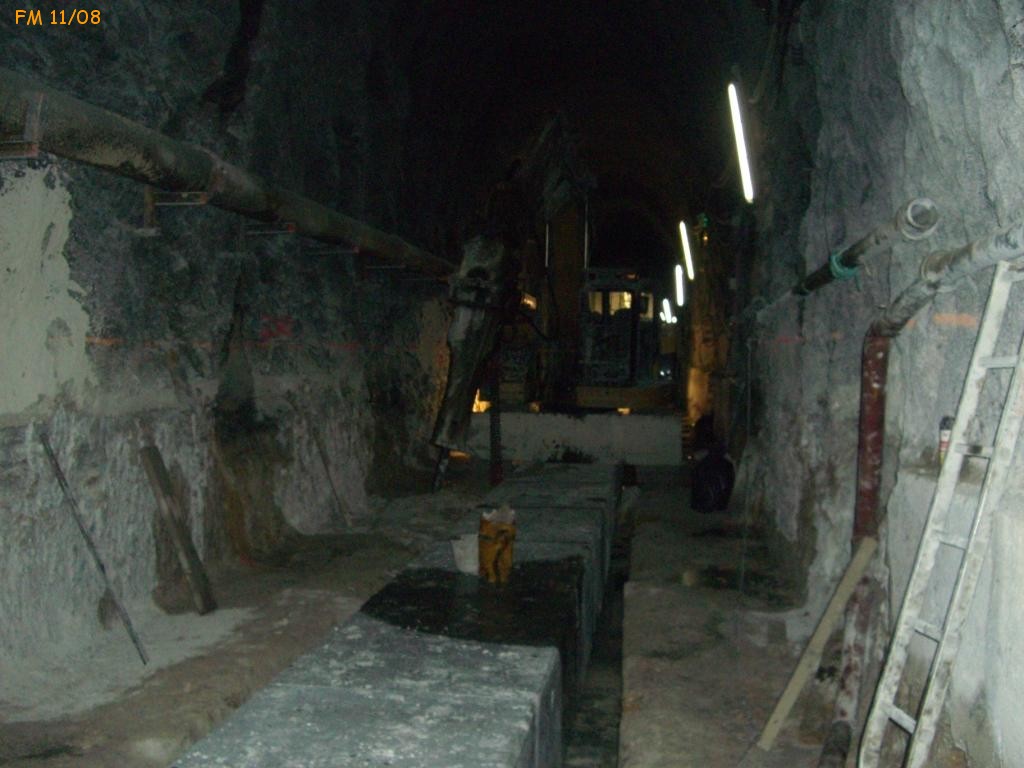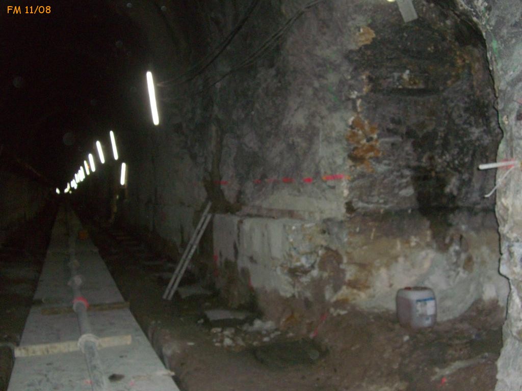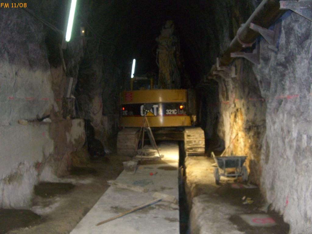 Lot2 Le tunnel de Mornay (Novembre 2008). Pose d'un collecteur au milieu de la plateforme pour canaliser l'eau de la source en sortie côté Nurieux.