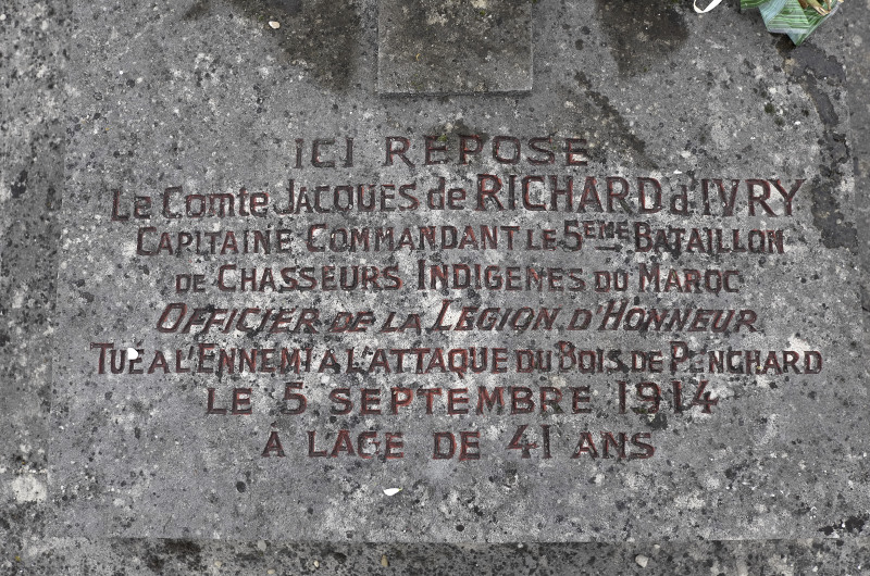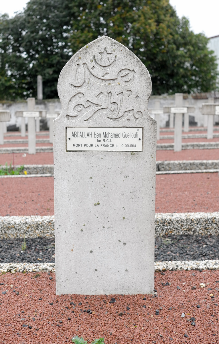 13. Retour sur le centenaire de la Première Guerre mondiale. Le 5 septembre 1914, à la droite du 276e régiment d’infanterie du lieutenant Charles Péguy, la 5e brigade marocaine est envoyée dans les champs de betteraves et les chaumes, donc à découvert, charger à la baïonnette les lignes de la flanc-garde allemande retranchée avec ses mitrailleuses Maxims dans les bois du Télégraphe à Chauconin-Neufmontier et Penchard (tout près de Meaux). C’est un carnage : 1100 tirailleurs marocains tués et blessés restent sur le terrain. Pour se donner du courage face aux balles des mitrailleuses allemandes, ils avaient chanté la « Chahada », qui correspond à notre « Credo », et ils sont morts en invoquant le prophète Mohamet. Plus tard, l’Armée française et la République ont loué ces hommes qui « savaient mourir ». En mai/juin 1940, ça été de même : les tirailleurs « indigènes » (algériens, marocains, sénégalais…) ont été envoyés contre les Panzer-divisionen, et puis aussi en 1944 en Italie, en 1945 dans les Vosges, et en 1950 en Indochine contre les Viêts. Je ne suis pas Charlie Peu de croix de musulmans dans les cimetières de la région de Meaux, car l’armée n’avait pas cru devoir tous les munir de plaques d’identification. Les musulmans sont donc dans des ossuaires, non identifiés. Au-dessus du nom, une sourate Les monts de Goêle, le village de Monthyon où était installée la ligne de défense allemande. En dessous, la LGV EST, et le terrain découvert des champs de blé (betteraves en 1914) sur lesquels l'infanterie s'est élancé. Bravo Charlie !
