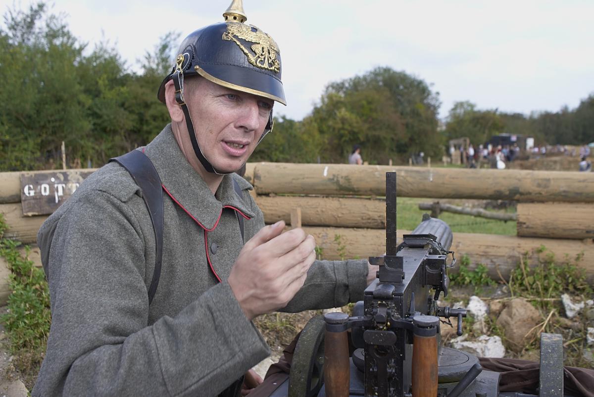 22. La première quinzaine du mois de septembre 2014 a connu diverses manifestations dans certaines communes du champ de bataille de la Marne : à Villeroy, Neufmontier, Barcy, Chambry. Il y a eu, entre autres, des reconstitutions de charges d’infanterie avec la présence remarquée de « reconstituteurs » allemands, qui ont ensuite monté un petit film avec un arrangement très rétro. La fameuse mitrailleuse allemande "Maxim" Le petit film tourné et "monté" par les "reconstituteurs" allemands (Villeroy et dans les tranchées reconstituées à Chauconin-Neufmontier).