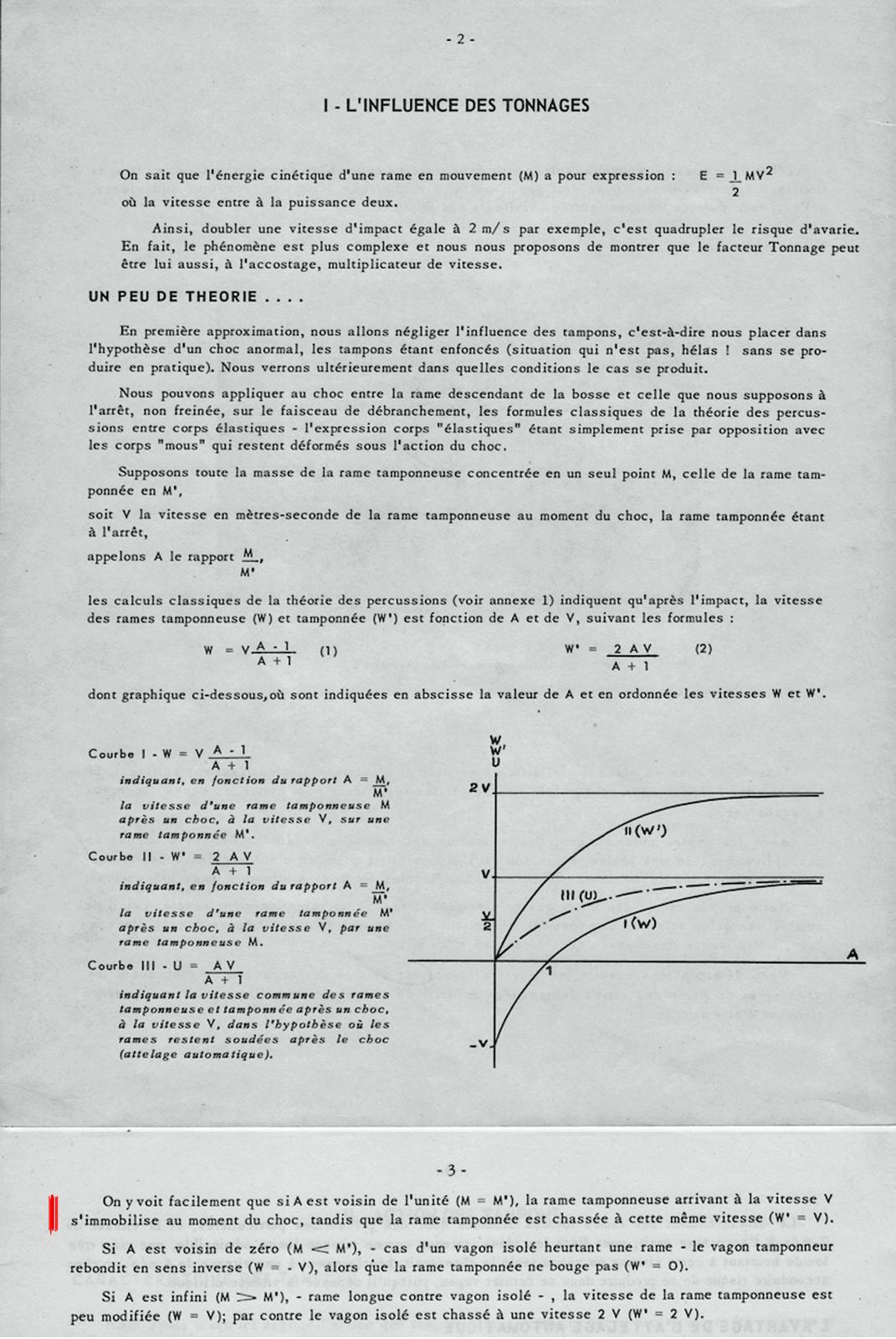16. Ci-joint un fichier, pour celui qui sait décoder la théorie. Ce que je retiens, c'est que la masse tamponneuse arrivant à une vitesse V, va s'immobiliser au moment du choc, tandis que la rame tamponnée arrêtée est chassée à cette même vitesse. Dans le cas d'une rame freinée à l'air qui est tamponnée, elle ne se déplacera pas, mais les chargements vont encaisser toute l'énergie de la masse tamponneuse.