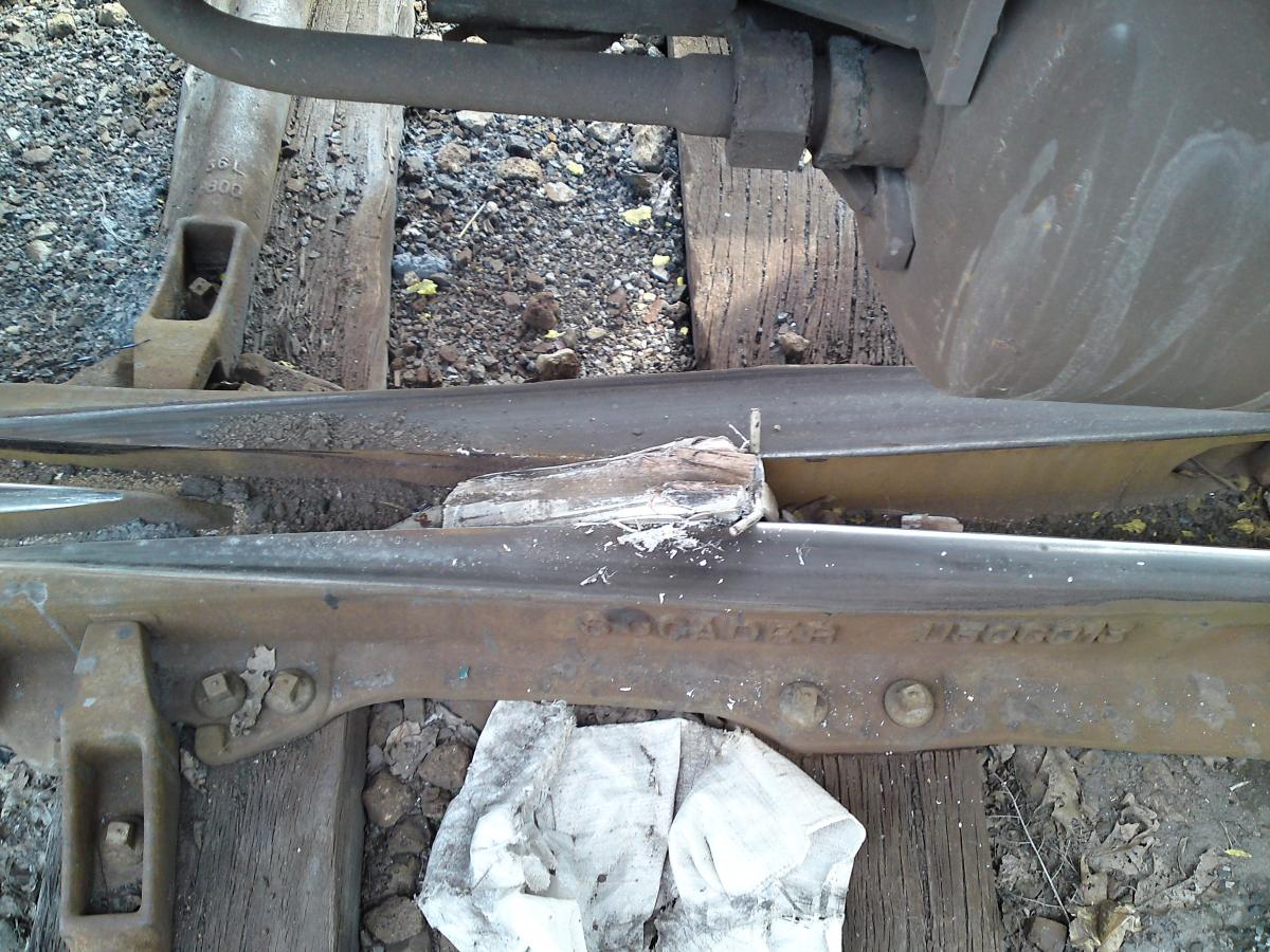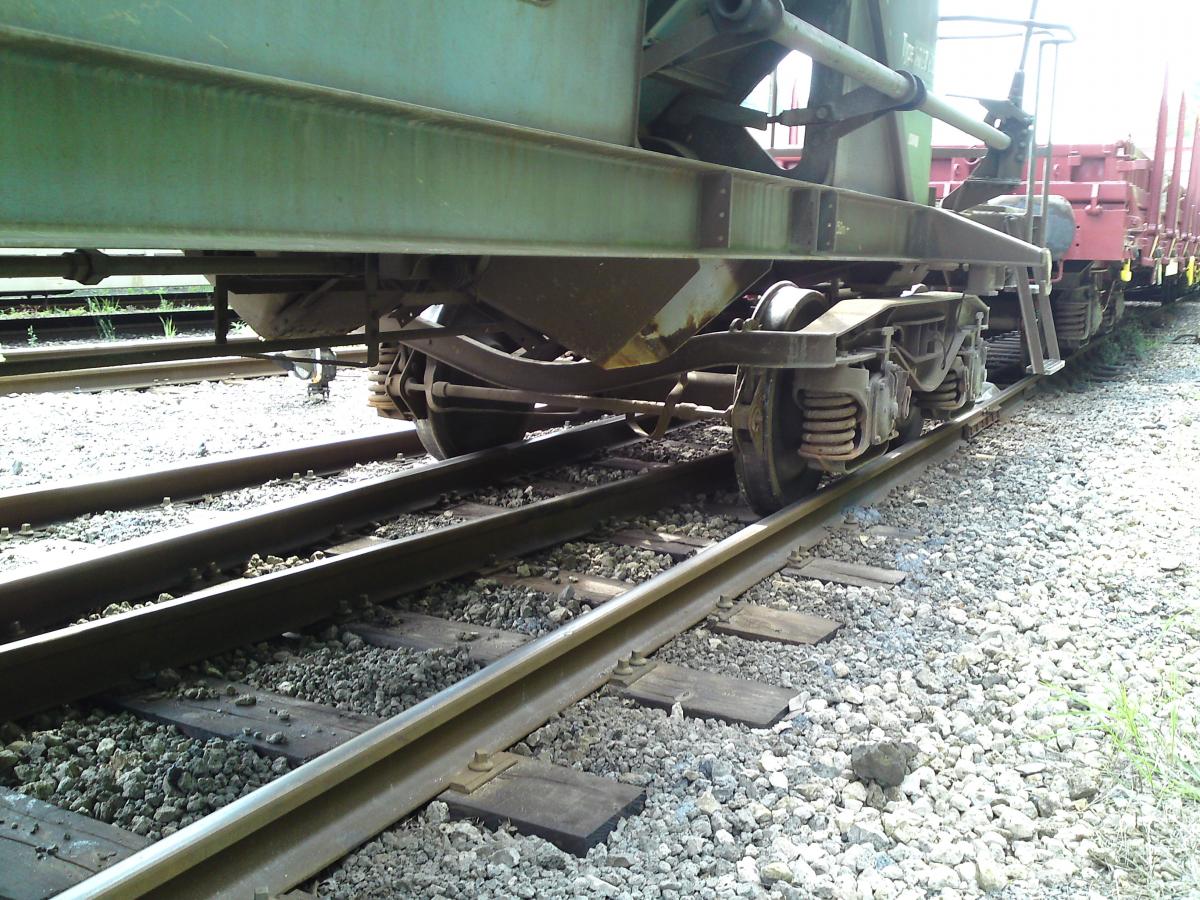 La roue d'un wagon sur la languette de la cale anti-dérive ne tourne pas et l'essieu glisse sur le rail, l'essieu moteur va tourner.
