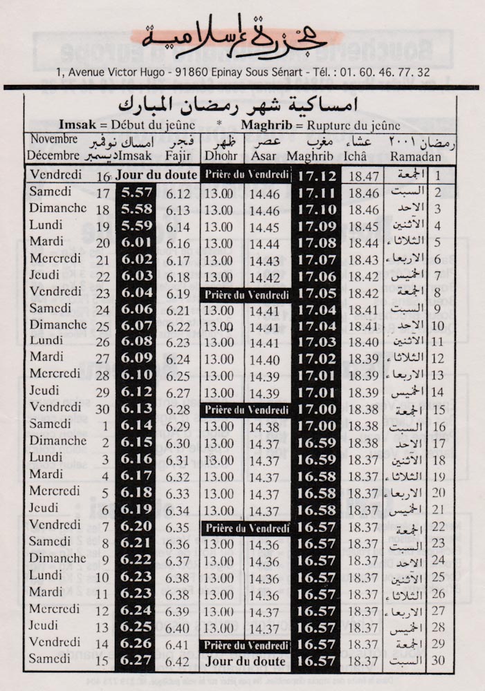Attention, je ne justifie pas du tout les exigences des musulmans en France. Moi-même au boulot, j’en ai subi les désagréments. C’est contre le principe « fort avec les faibles, faible avec les forts ». Les mêmes élus la rabaissent devant les caïds de banlieue. Je travaillais en 3X 8, et en plus de mon roulement, j’avais le calendrier du ramadan. Parce le ramadan est une fête mobile et chaque année elle se décale d’un mois. Lorsque le ramadan tombait au mois de juin et que j'étais de nuit, voilà ce qui se passait (vécu) : 20 h 20, prise de service : un quart des agents sont musulmans. Il faut démarrer pile à l’heure parce que de nuit il y a (avait) du taf. 20 h 30, c’est le coucher du soleil officiel d’après le calendrier lunaire. Tous les marocains annoncent qu’ils arrêtent le boulot pour casser la croûte. Et c’est pas des sandwichs, mais c’est la couscoussière, donc minimum 30 minutes d’arrêt de travail. Alors, il faut « déboutiquer » comme on disait : untel va remplacer untel en attendant, et lui-même remplacé par untel. Alors, ça gueule. On ferme les yeux sur certaines choses : le conducteur marocain de l’Y8000 est remplacé par son accompagnateur qui sait conduire, mais n’a pas l’autorisation, etc. Je me souviens d’en avoir parlé au directeur d’établissement qui avait levé les bras au ciel en me disant « pas d’histoires avec l’ambassade, faites pour le mieux, on compte sur vous ». Donc, ces histoires de voile me font bien marrer. Souvenirs des années 90 : calendrier affiché dans certains postes de travail par le "Hadj". Là, ça tombe de soirée à 18h00, pas de problème parce qu'a cette heure, on attendait les trains !