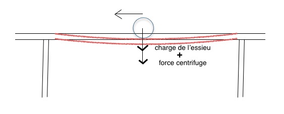 5. Je n'ai aucun souvenir sur le changement de masse par essieu ni pour le changement d'essieux. Je me rappelle quand même que les visiteurs ont pendant un certain temps fait la chasse et réformé sur le champs les wagons marchandises qui présentaient un défaut sur la toile des essieux ; défaut appelé "déjettement". Concernant les limitation de vitesse sur un pont. On m’avait expliqué ou j’ai lu quelque part que la masse du convoi comptait, mais aussi la vitesse du point de vue de la charge supportée par le pont. Lors du passage d’un train, le tablier du pont prend une flèche qui génère une force centrifuge et cette force centrifuge se multiplie avec la masse. Plus la vitesse est grande, plus la charge supportée par le pont est élevée.