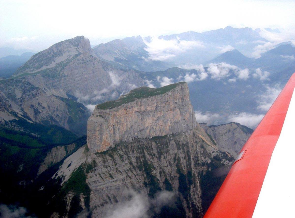 Une amie pilote amateur m’a donné ces photos prises en vol, sur le Mont Aiguille au premier plan, et la grande muraille qui protège le plateau sud Vercors occupé par les maquisards, en arrière plan. Une vue sur la prairie du mont Aiguille ; la première escalade a été faite par Antoine de Ville en 1492, à l’aide d’échelles et de pitons, c'est intéressant de lire le récit de cette première escalade, ils avaient emmené de force un curé pour bénir le sommet ! En 1957, un avion a atterri sur la prairie du mont Aiguille