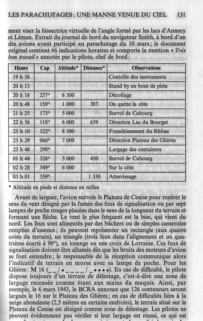 Comme le montre la page du livre, les avions étaient en altitude, entre 2 et 3000 mètres d’altitude, et les terrains de parachutage se trouvaient sur les plateaux. En plus des avions abattus, il y avait aussi des crashs suite à des erreurs de navigation ainsi que des avions qui n’ont jamais trouvé l’objectif. Il y en a même un qui a parachuté son matériel en Suisse.