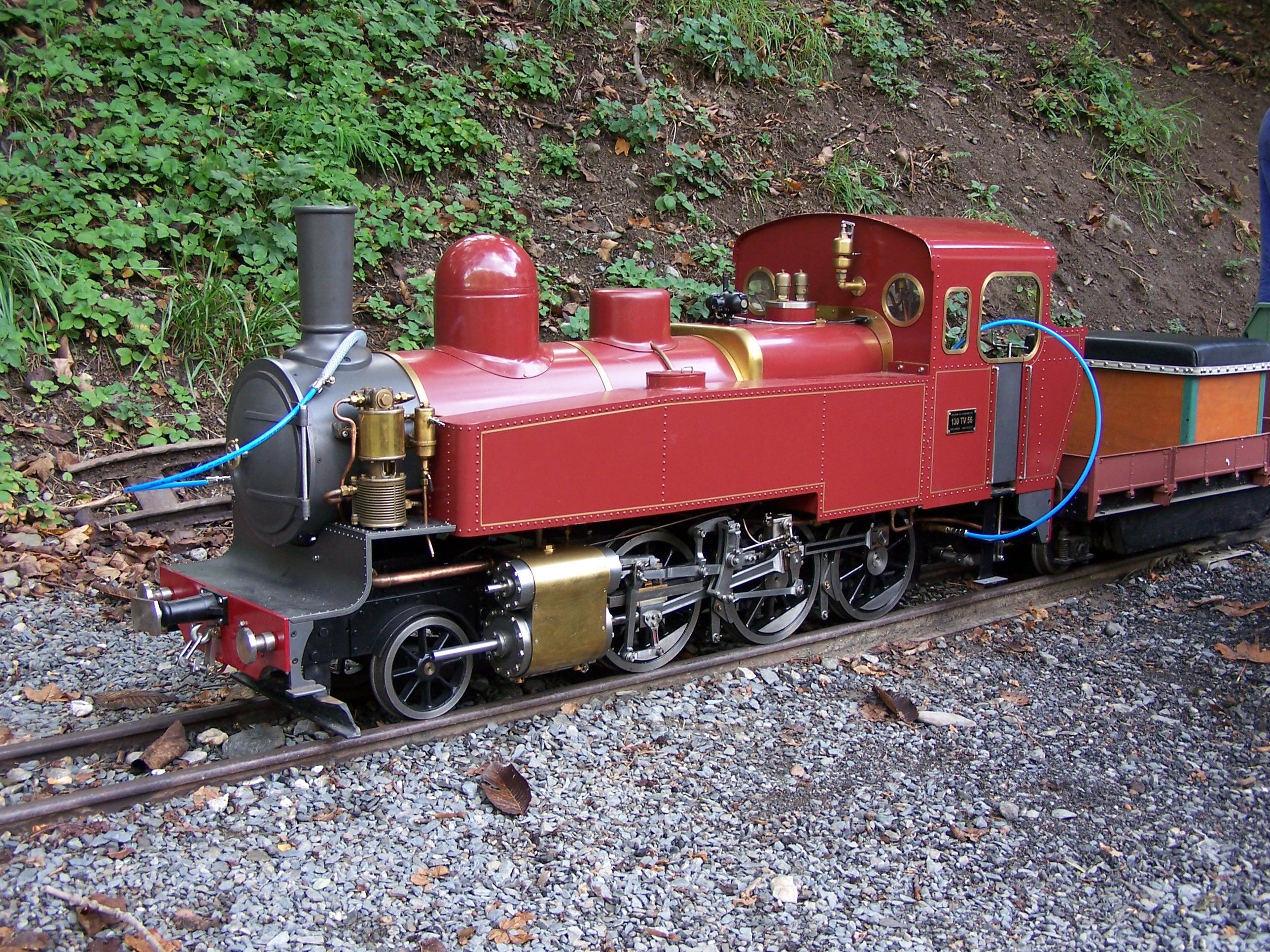 salut vinces, la petite vapeur que tu as vu au parc thermal s'appelle " nine " et est la réplique d'une machine en voie de 60 du chemin de fer de Pithivier. Cette loco à environ 30 ans, on ne sait pas qui la construite, depuis pas mal d'années elle fait partie de la collection du président fondateur du " petit chemin de fer du parc thermal " Ormi mes trois machines et la nine, une loc diésel réplique d'un vt 200 allemand et une 130 type sncf font parti du parc traction de l'assos. Ces deux machines sont des bijoux construits par un ancien tractionnaire sncf, ce monsieur était un orfèvre, pour avoir vu d'autres pièces de sa collection, c'est a tomber sur le c.l tant le niveau de reproduction est fidel PS: si vous passez dans notre coin un de ces jours et que le petit trains est ouvert le samedi dimanche, vous êtes les bienvenus ( gratuit il est le p'tit train )