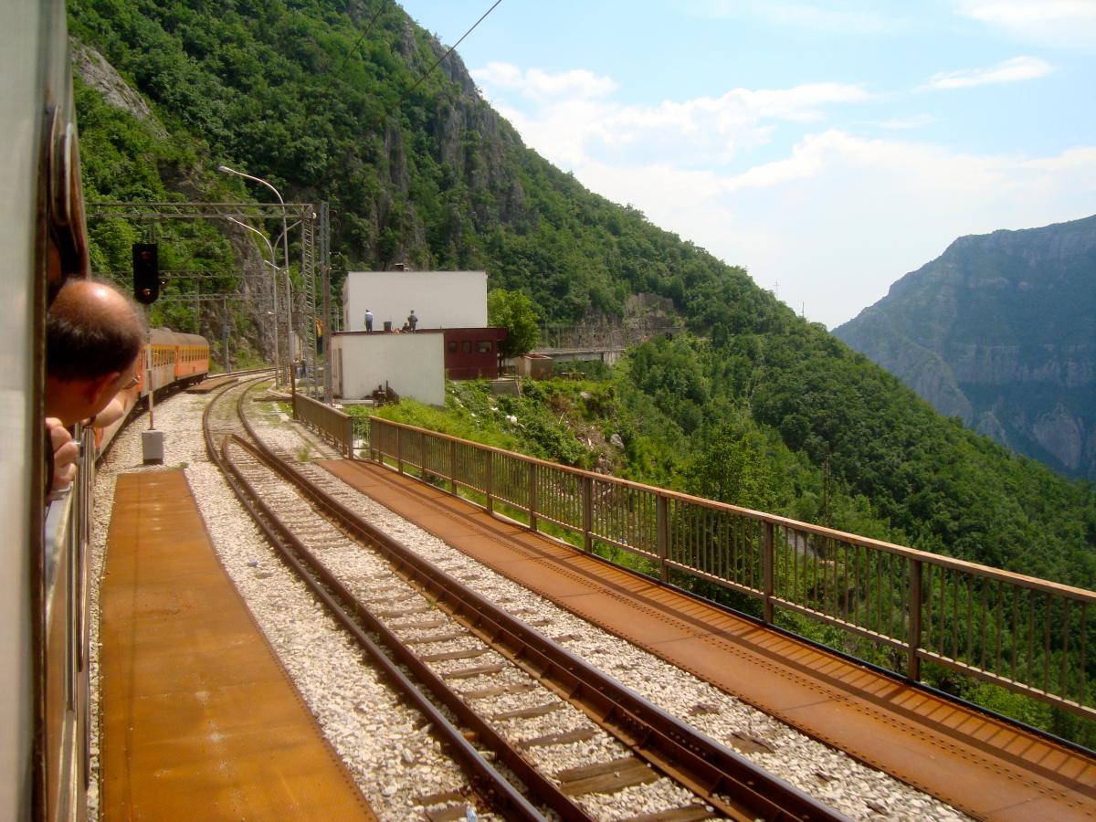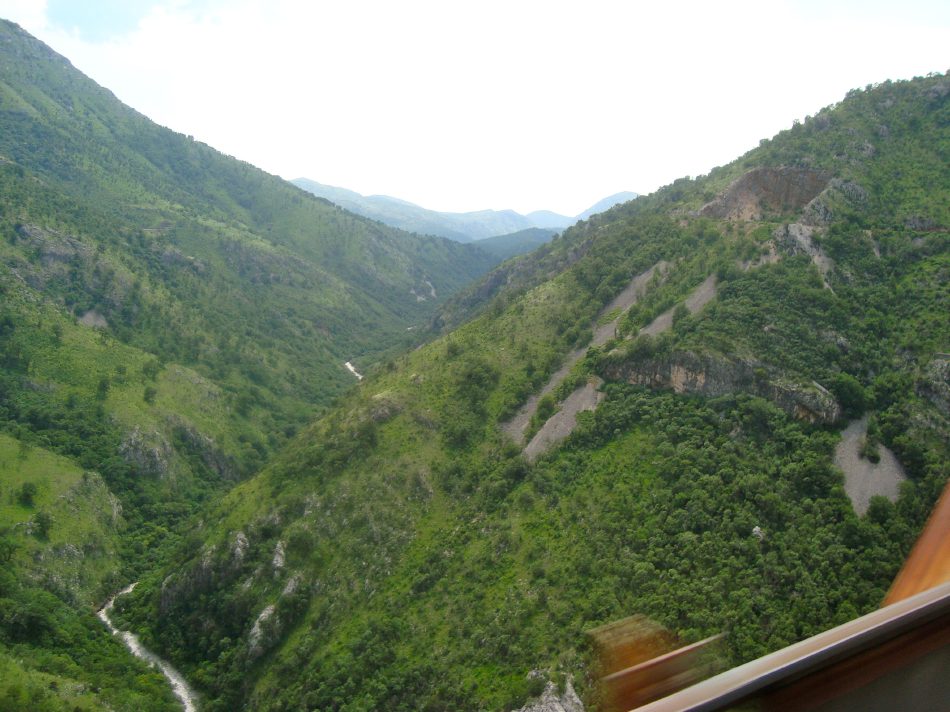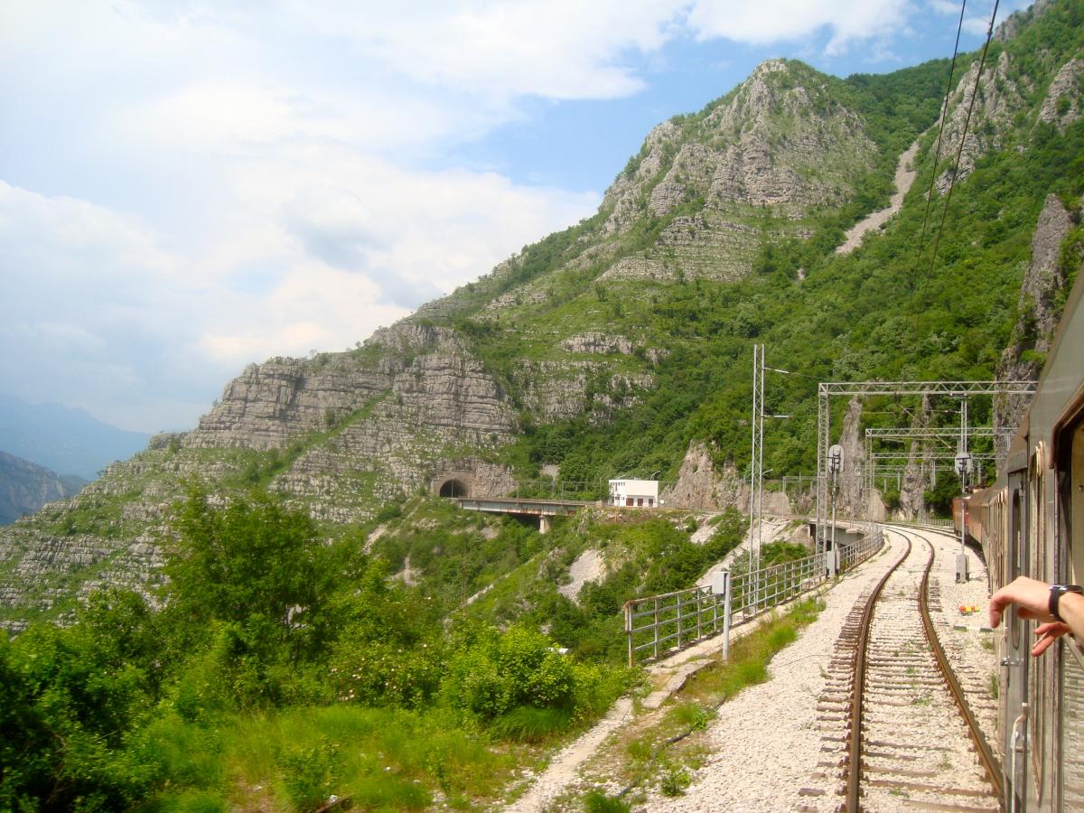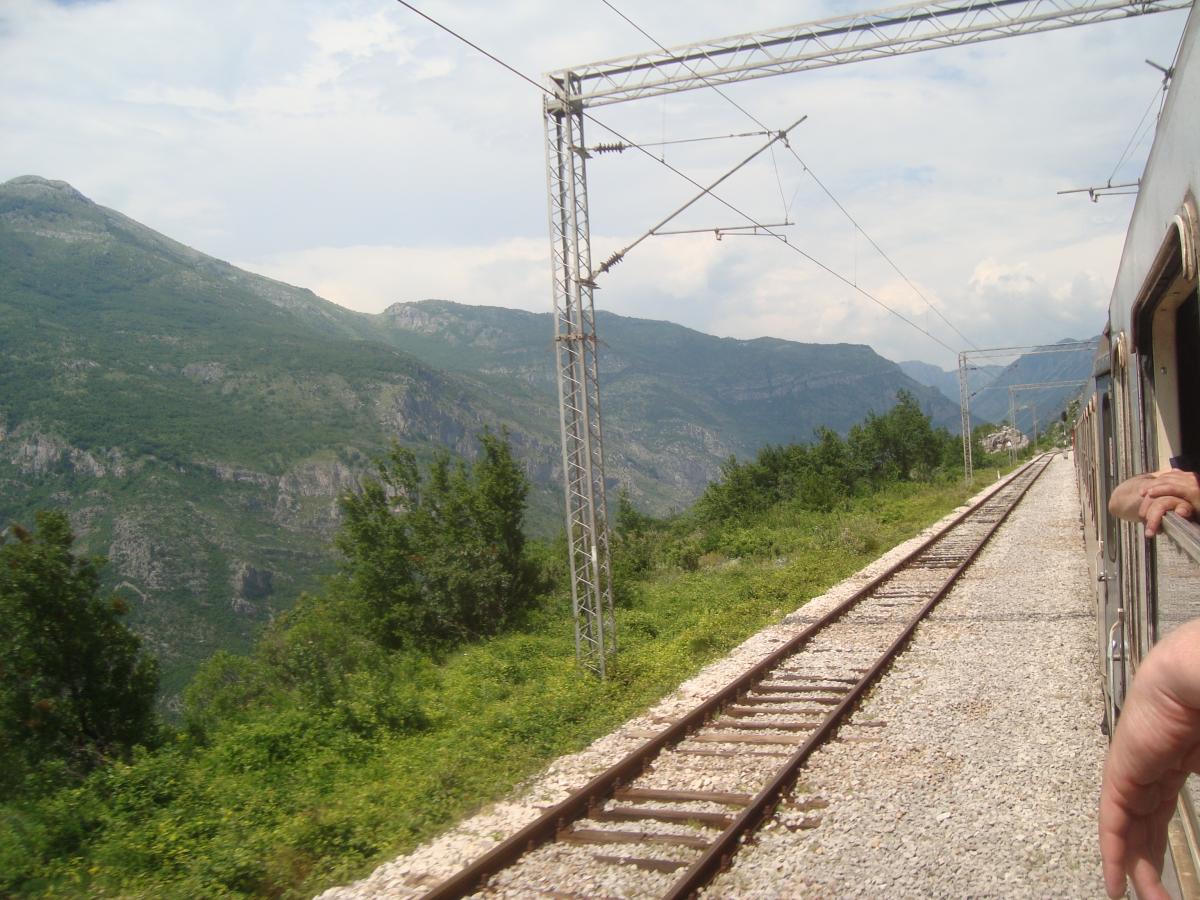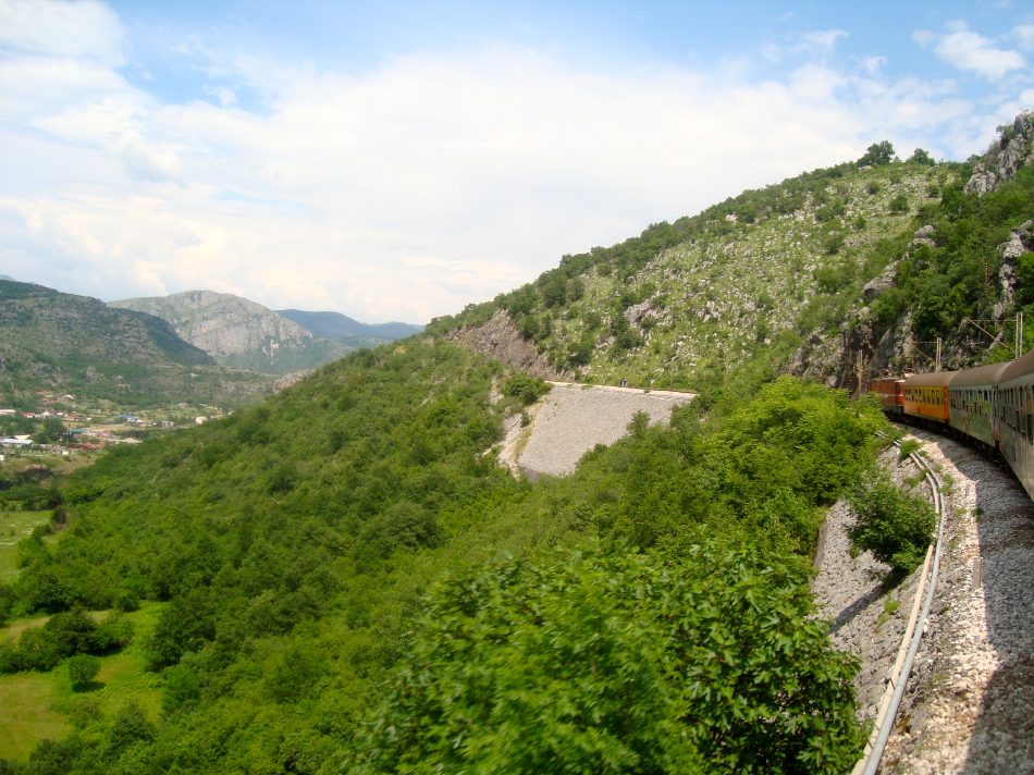 Tout de suite après la gare de podgorica, le train pour Belgrade attaque de longues rampes dans la vallée de la Mala Rijeka.