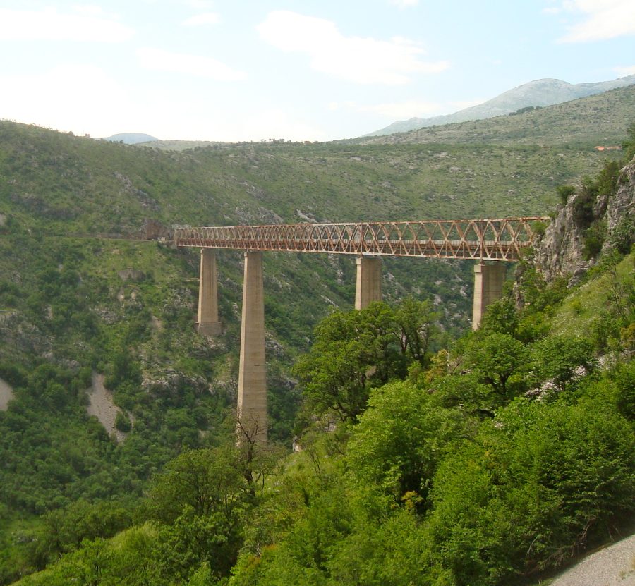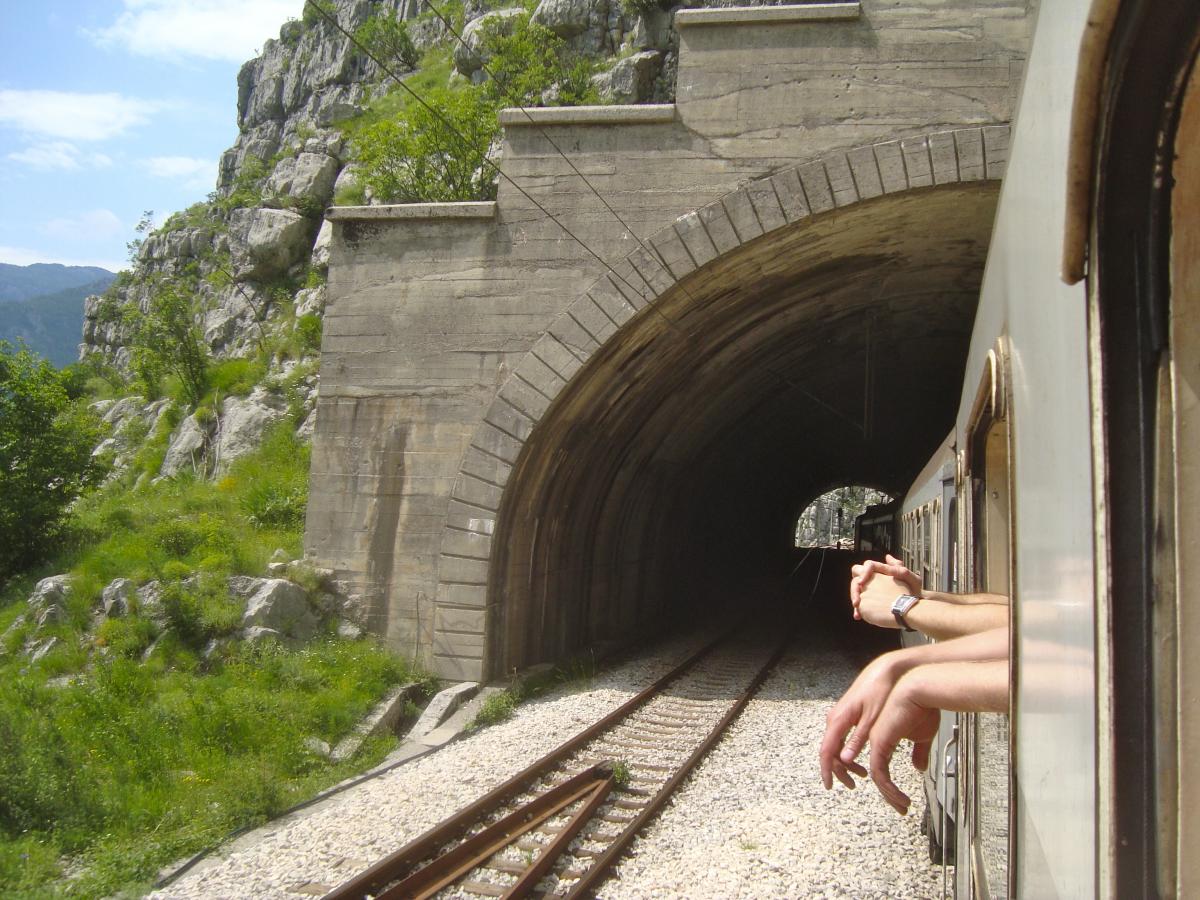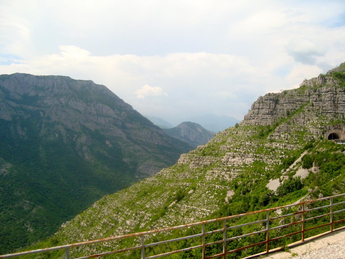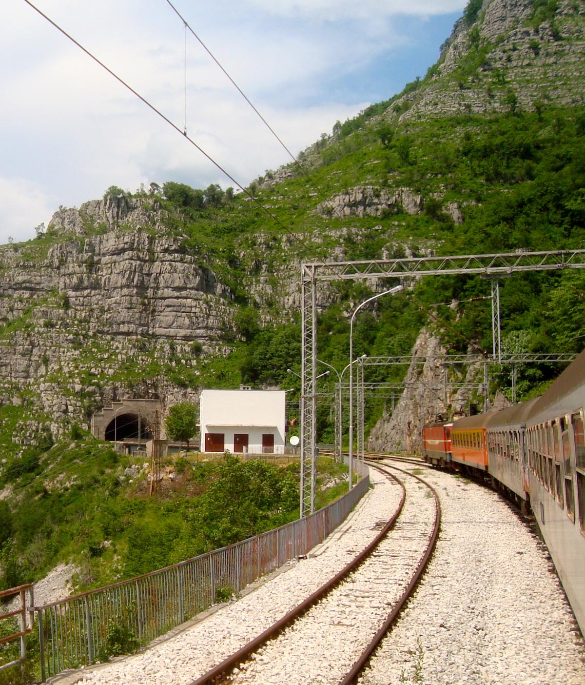 Tout de suite après la gare de podgorica, le train pour Belgrade attaque de longues rampes dans la vallée de la Mala Rijeka.