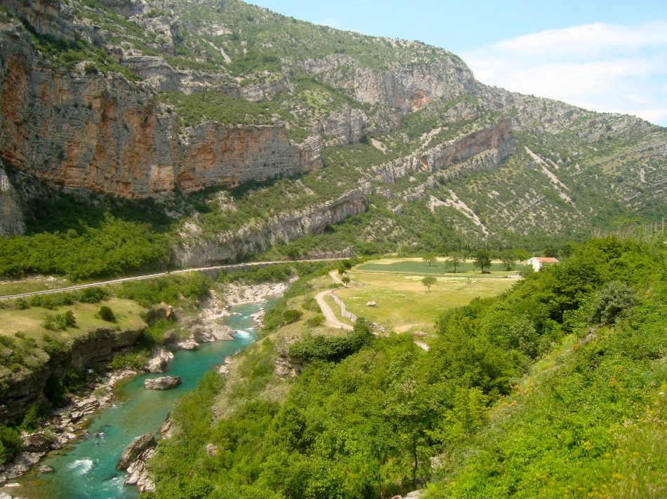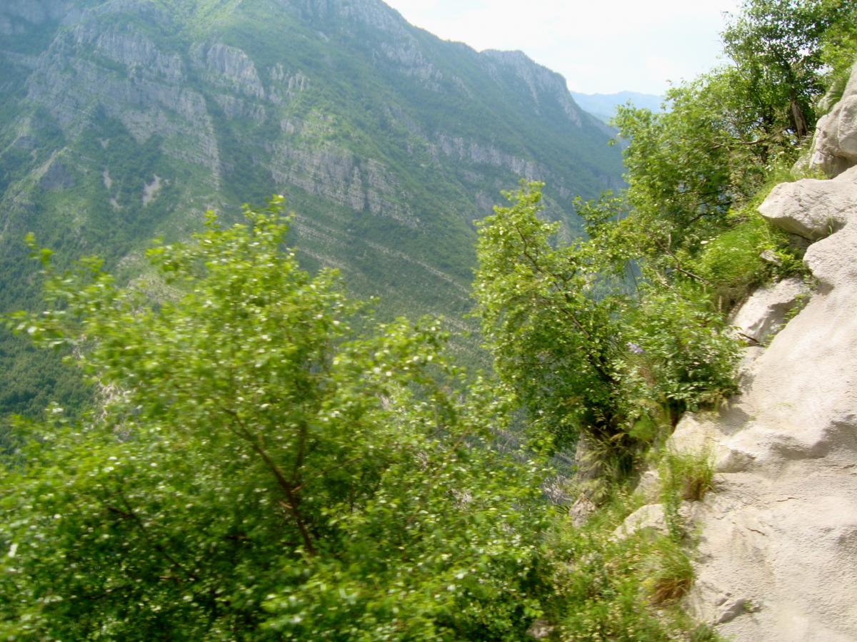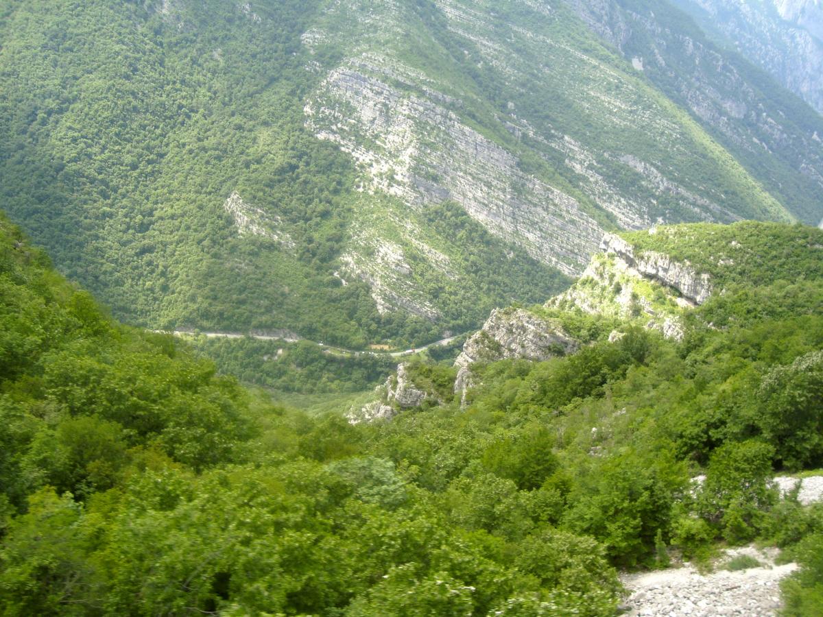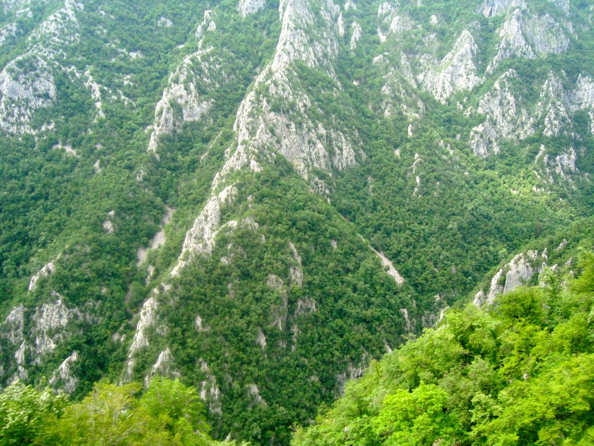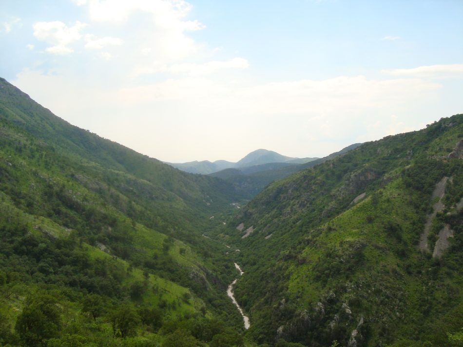 Tout de suite après la gare de podgorica, le train pour Belgrade attaque de longues rampes dans la vallée de la Mala Rijeka.