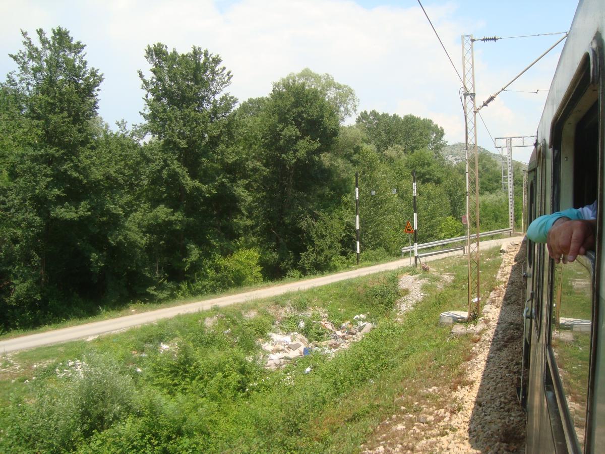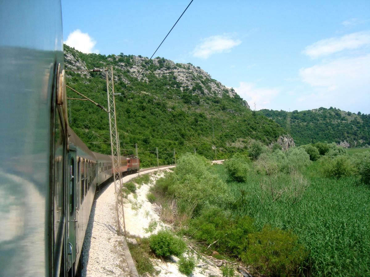 Au départ de la gare de Sutomore, la ligne s’engage sous un long tunnel pour déboucher sur le lac Skadar. Ce lac est traversé par la frontière avec l’Albanie.
