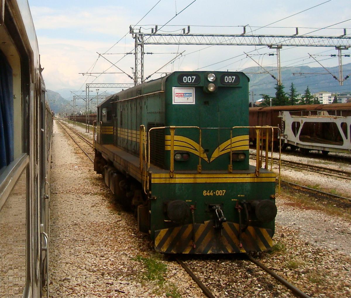 Nous arrivons maintenant en gare de Podgorica, capitale du Monténégro. De cette gare, se raccorde une ligne fret pour l’Albanie. Une vue d’un 644, série de Diesel construit en Espagne par Macosa sous licence GM. Cette série est emblématique dans tous les pays des Balkans après l’éclatement du parc JZ.