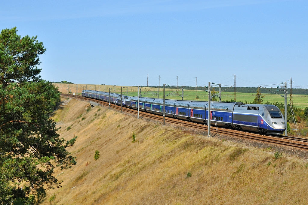 Bonsoir tout le monde. Une UM de Duplex (rame 275 en tête) sur le TGV 6703 Paris-Lyon - Mulhouse-Ville vu à la sortie de la LGV SE: Aisy-sur-Armançon, 17 septembre 2012
