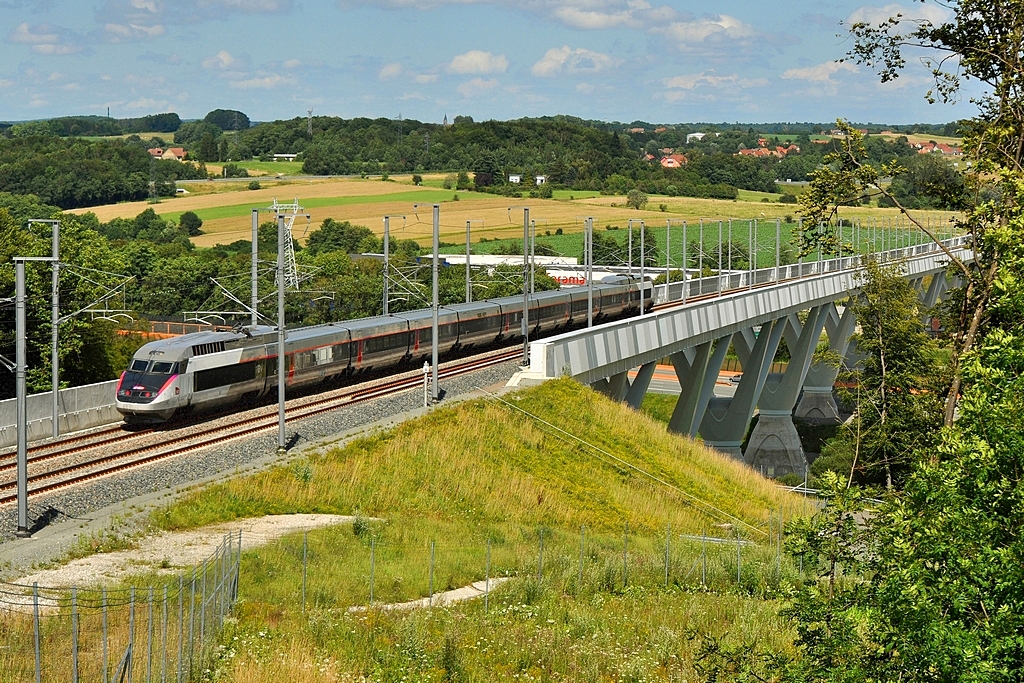 Bonsoir tout le monde. Un Velaro D est venu faire plusieurs marche d'essais sur la LGV Rhin-Rhône le 15 avril dernier, le voici s'apprêtant à franchir le viaduc des Epenottes en direction de Mulhouse: