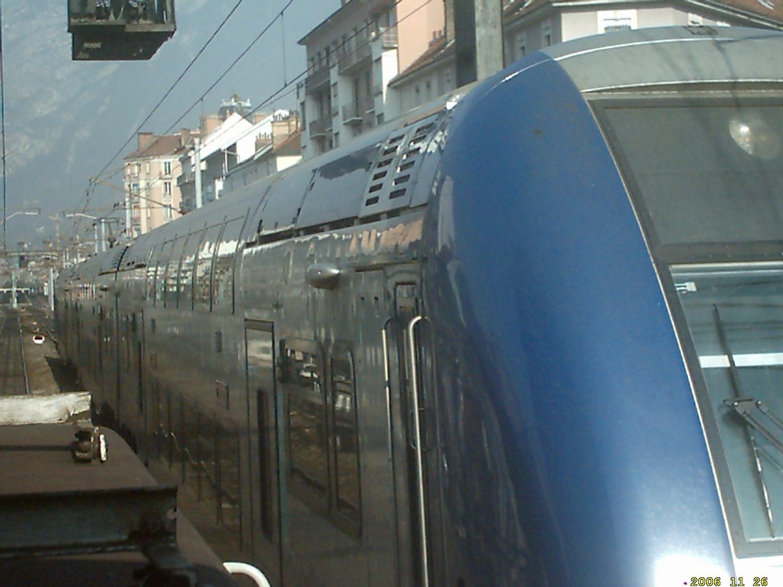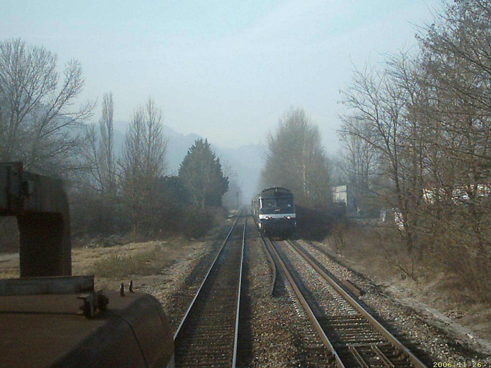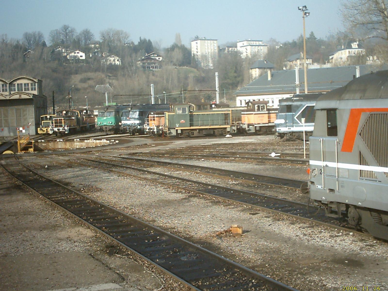 3. salut description d'une journee d'un creq equipement et de son agent d'assistance depart chambery: 09h22 montmelian direction grenoble sortie montmelian:bientot plus de catenaire......... croisement apres pontcharra.....ça siffle des deux cotés pupitre,on est bien a 60 km/h la gare olympique (1968 ) du moins ce qu'il en reste!! arrivé a grenoble vers 10h45 impasse du loco pour depart pont de claix,le collegue se renseigne...a grenoble,pas de soucis avec les differents personnels on fait la course,petit.....? arrivé a pont de claix,onpose nos wagons et on se casse au plus vite hlp pour grenoble (site classé seveso ) retour a grenoble(photo pas terrible,mais je debute....sorry.... arrivé grenoble 11h 45,on va manger un kebab et c'est repartit a 13h30 avec le soleil et un beau vert des ligne droite a n'en plus finir,a 60 km/h, c'est long arrivé a chambery,galerie de nezzin,sans flash on arrive au remisage a la plaque pour terminer la journée,une petite vue d'ensemble fin de journée 15h30, reste a monter au bureau pour voir pour demain................ a+