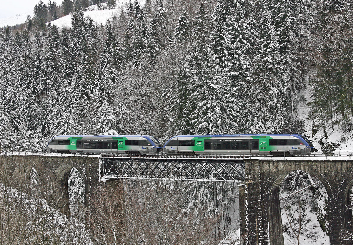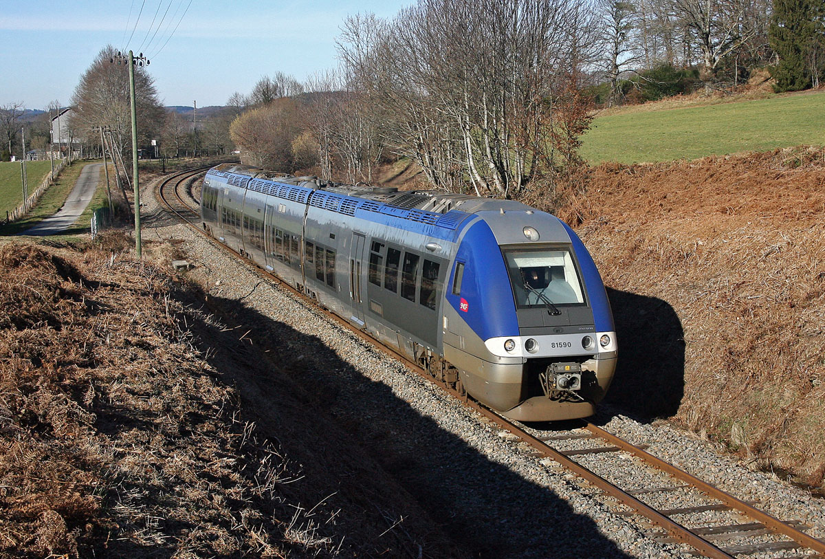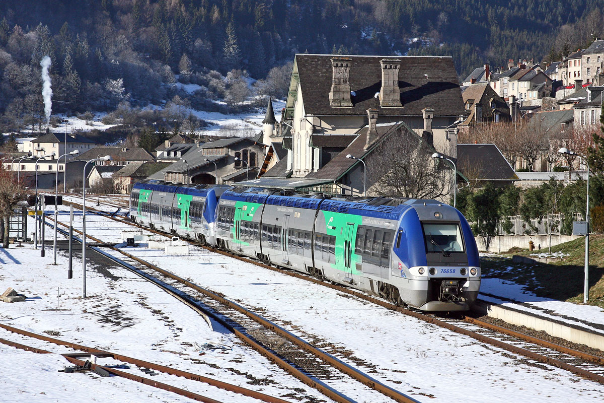 Voici quelques photos prises en hiver dans le Massif Central : PHOTO #1 AGC B 81500 Limoges - Ussel à Plainartige ( 25-01-2008 ) PHOTO #2 Draizine Chasse Neige en gare du Lioran ( 05-02-2008 ) PHOTO #3 UM d' X 73500 ( région Auvergne ) Neussargues - Aurillac à la sortie sud du tunnel du Lioran ( 05-02-2008 ) PHOTO #4 AGC B 81500 et UM de Z2 ( région Languedoc-Roussillon ) en gare de Marvejols ( 16-02-2008 ) PHOTO #5 UM d'AGC X 76500 ( région Auvergne ) Aurillac - Clermont-Ferrand en gare de Murat ( 04-01-2009 ) * Les photos ont été traitées en luminosité / contraste puis recadrées