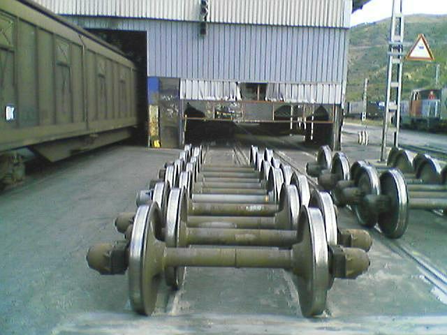 1ere photo : l'échangeur du Talgo à Port-Bou 2ème : stockage d'essieux Français/Espagnol à Cerbère 3ème, 4ème, 5ème, 6ème : Changement d'essieux