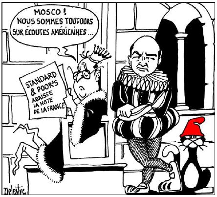 En attendant, mieux vaut en rire qu'en pleurer ... Dessin de monsieur DELESTRE EST REPUBLICAIN du samedi 9 novembre 2013 On notera le chat avec le bonnet rouge ... signe de la contestation omniprésente