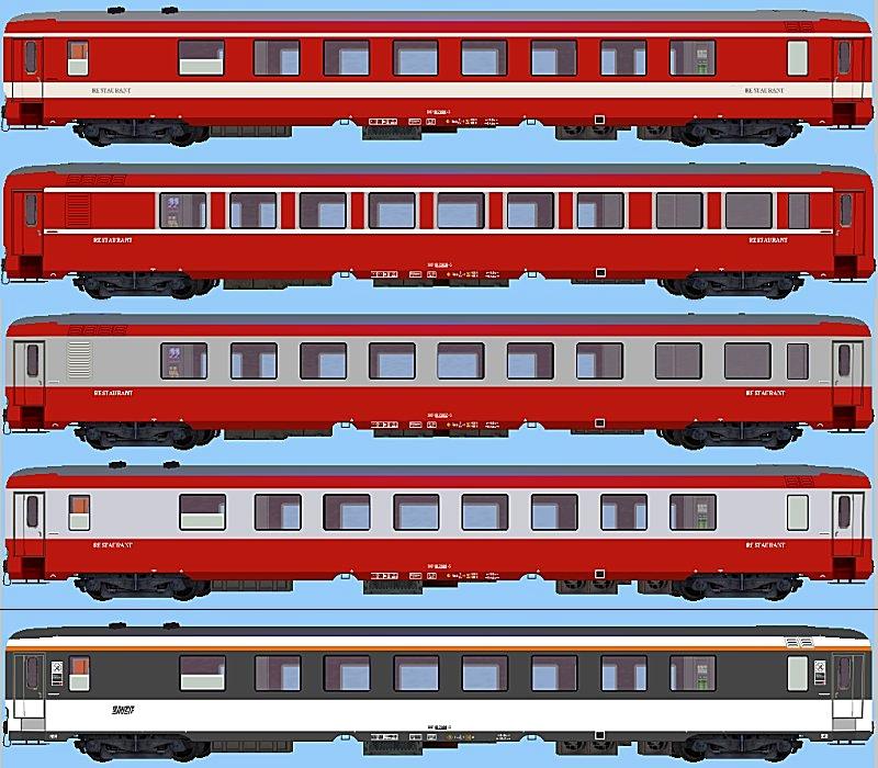 14. Techniquement, il n'y arien de particulier à faire.... C'est juste une OC classique, avec des teintes et un plan de déco qui changent.... Oui, ça, c'est LA bonne idée.... Une rame qui n'est plus en service commercial, et qui passerait à peu près partout en France régulièrement. On en reste aussi, je le répète, à l'image commerciale de la chose.... Ou le voyageur non passionné de la chose ferroviaire se dira à la couleur du train que c'est un vieux TGV.... En passant sur les quais, on commence à entendre quand ce n'est pas une rame Carmillon "Ah ben nous, on a encore un vieux train"..... Alors en orange.........