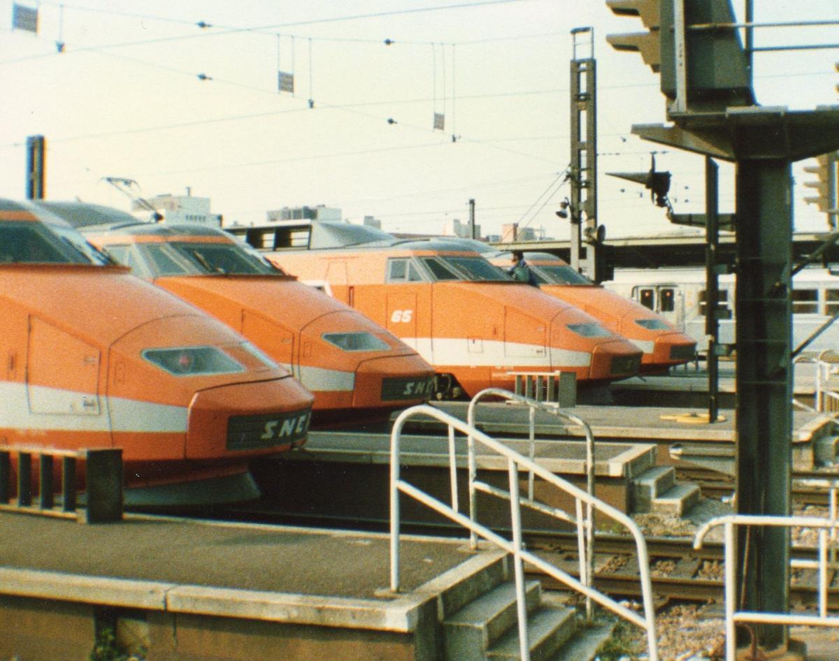 Vous voulez du TGV Orange??? J'en ai TRES peu, mais bon.... Celle ci a été faite le lendemain de la catastrophe de la Gare de Lyon, le 27 juin 1988. Pour ce qui est de repeindre une rame en orange, le sujet a déjà été évoqué ici plusieurs fois.... Il y a un problème d'image vis à vis du public: TGV orange = vieux TGV... De plus, quand on voit les rafistolages au niveau des nez, des trappes d'attelage, etc.... pas sur qu'elle conserve cette livrée intégrale très longtemps. L'argument d'ajouter une sorte d'affichette "TGV repeint dans sa livrée d'origine" n'aurait pas d'argument commercial, seulement de rajouter au fait que si c'est sa livrée d'il y a 30 ans, c'est donc bel et bien un vieux train qui risque de tomber en panne.... Le parallèle donné par les compagnies aériennes n'est pas applicable, car là, on sait qu'un A320 "retrojet" n'a pas l'age de la peinture qu'on lui applique. Ci joint l'A320 Retrojet d'Air France. Profitez en pour le photographier, car il approche grandement de l'age de la retraite celui -là...