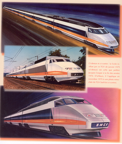 Ce esquisses sont des dessins de Mr Jacques Cooper, le designer du TGV.... Il y avait toutes les couleurs possibles, et des formes assez lointaines de celle-ci.... Ces dossiers avaient d'ailleurs fait l'objet d'un dossier de plusieurs pages dans le milieu des années 80 dans un Voies ferrées.... Quelques unes de ces réalisations ici : http://flickeflu.com/set/72157604595100277 Un fichier sur quelques projets pour le TGV tiré de ce lien: