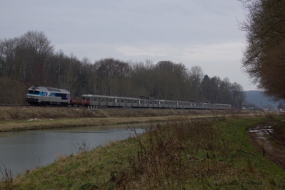3 Z6100 radiées en acheminement Pantin - Vesoul avec la CC 72049 en tête à Luzy sur Marne. Photo de Jonathan Woifflard, trouvée sur FB.